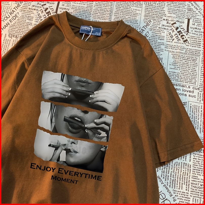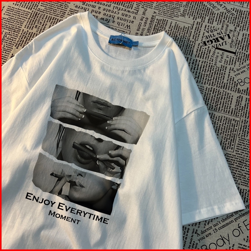 Yesgirl Enjoy Everytime Moment American Hip Hop Cetak Kaos Kasual Longgar Kaos Oversize Wanita Fashion Korean Style Baju
