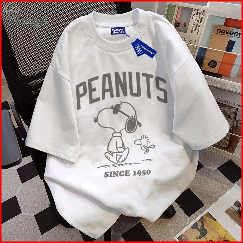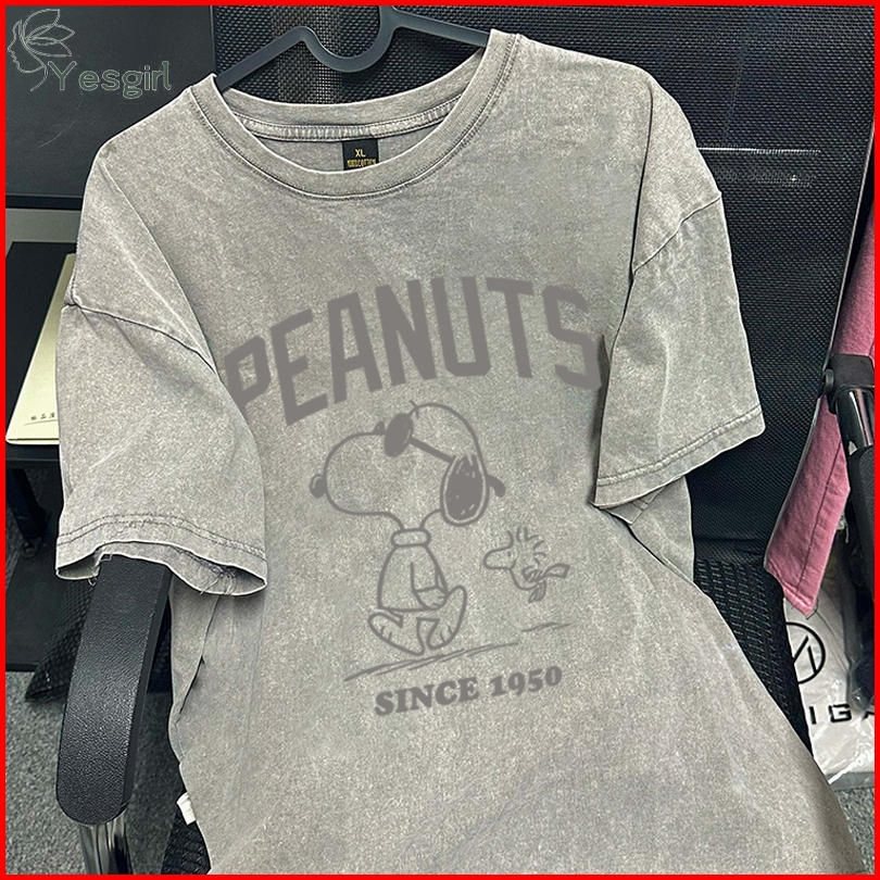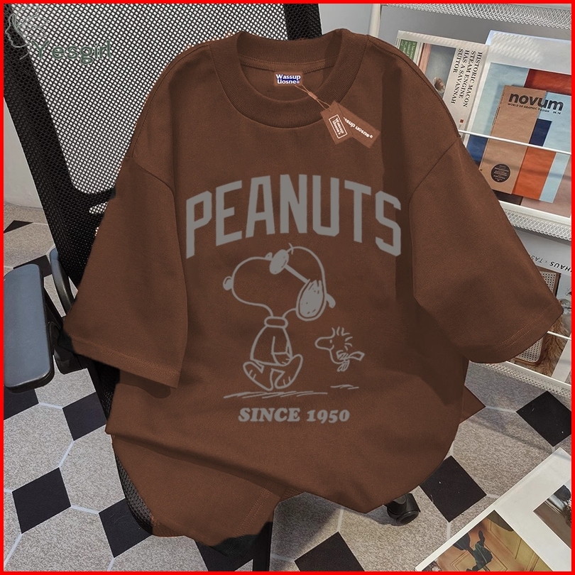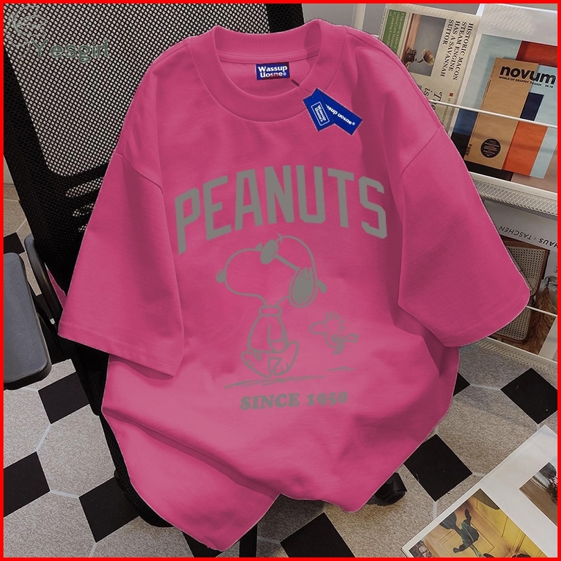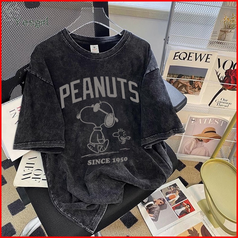 Yesgirl Korea Style Peanuts Snoopy Print Kaos Kasual Longgar Kaos Oversize Wanita Fashion Korean Style Baju Kaos Oversiz