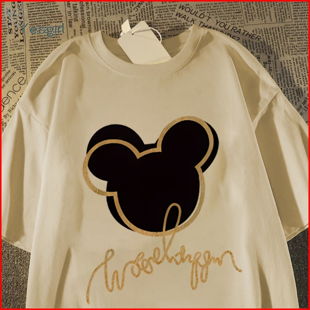 Yesgirl Korea Style Cartoon Cute Mickey Mouse Print Kaos Kasual Longgar Kaos Oversize Wanita Fashion Korean Style Baju K