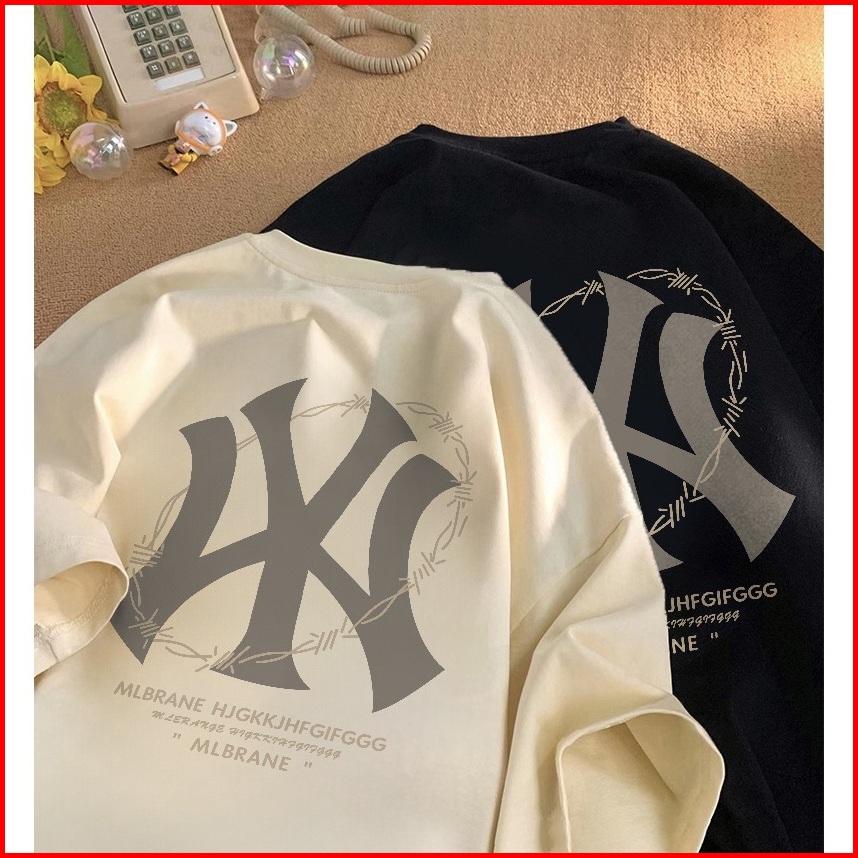 Yesgirl Baju Kaos Cream Cowok Asli 100 Laki Laki T-shirt Retro Street Style-kaos Lengan Pendek Pakaian Pria Dan W