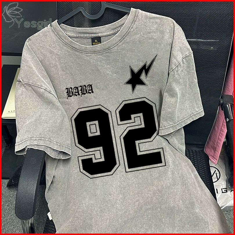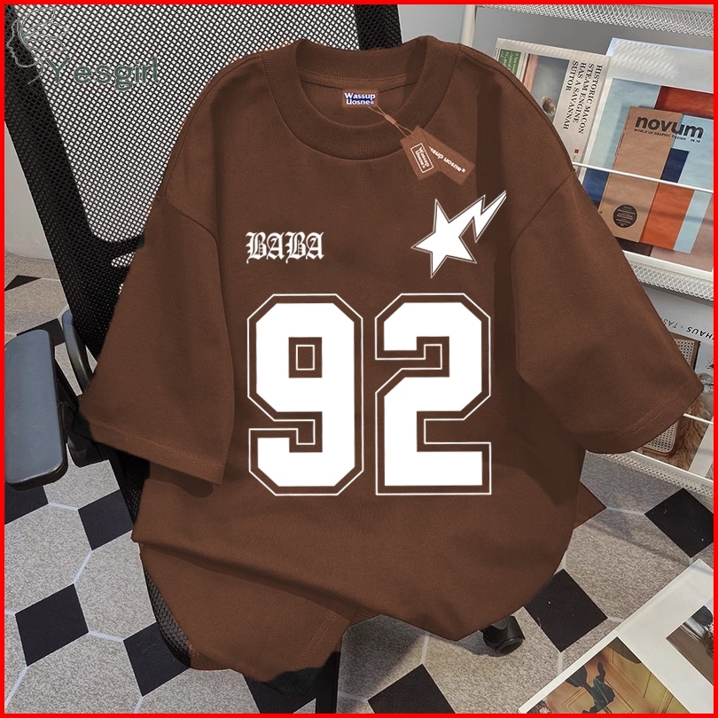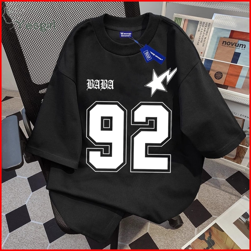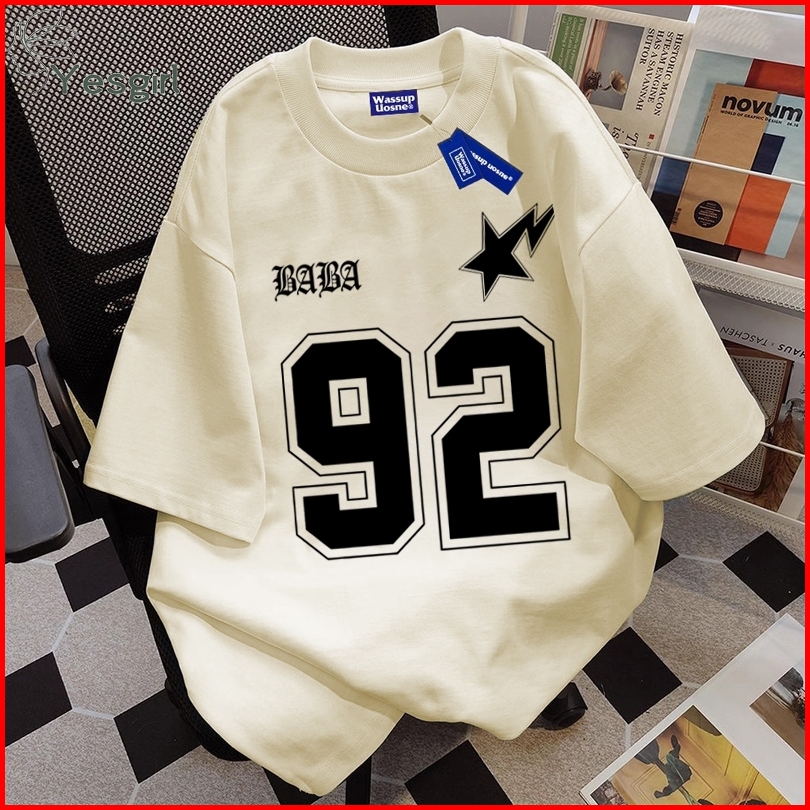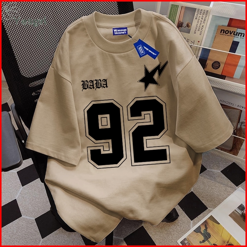 Yesgirl Korea Style Nomor 92 Print Kaos Kasual Longgar Kaos Oversize Wanita Fashion Korean Style Baju Kaos Oversize Baju