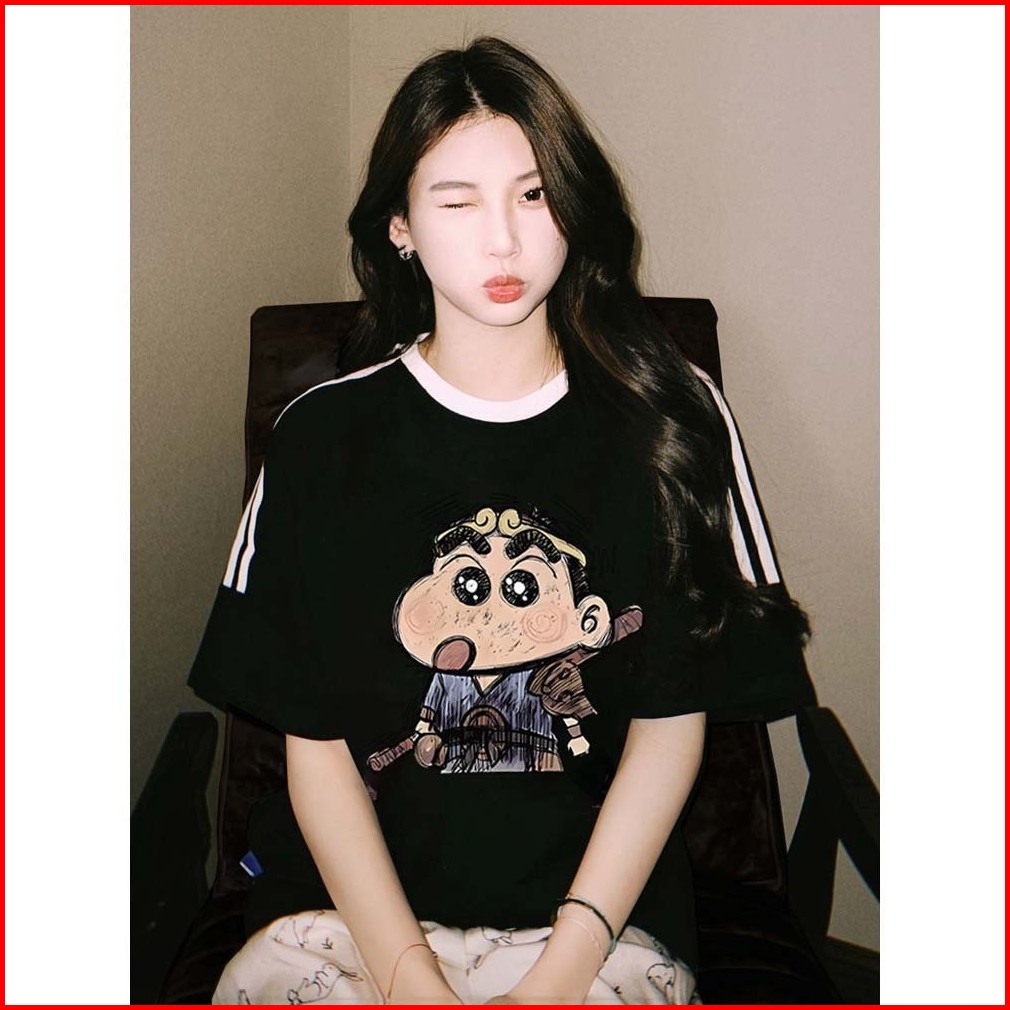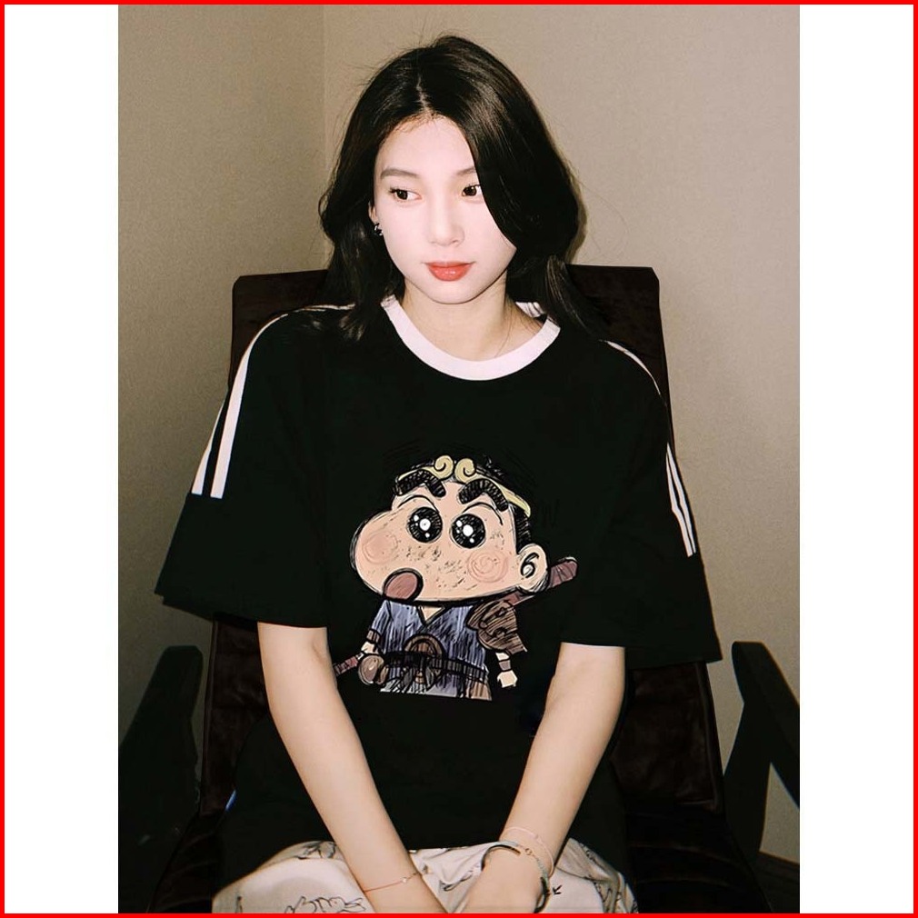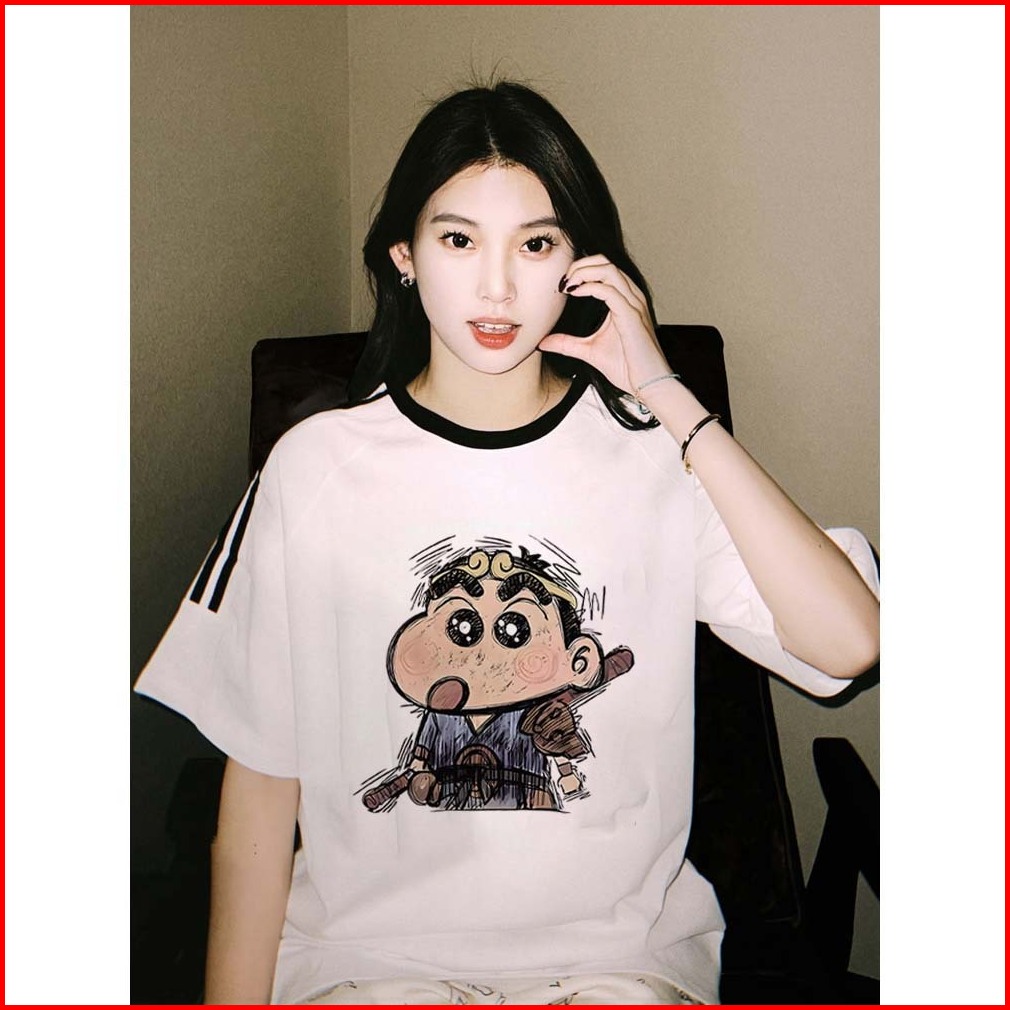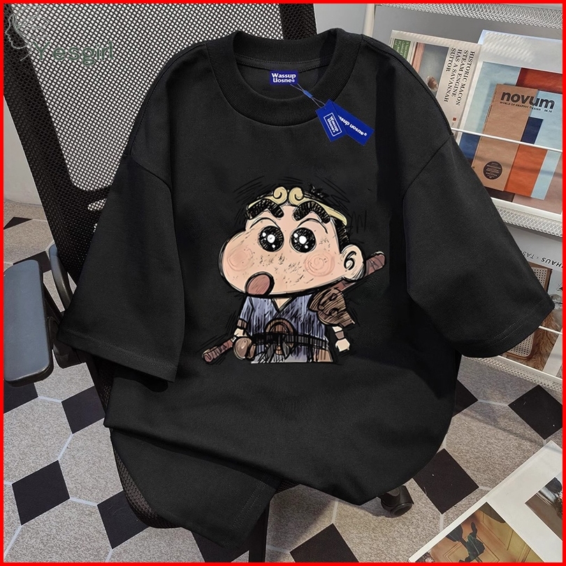 Yesgirl Baju Wanita Putih Black Kaos Premium Lengan Pendek Oversize Korean Style Crayon Shin-chan Print Atasan Wanita Ke