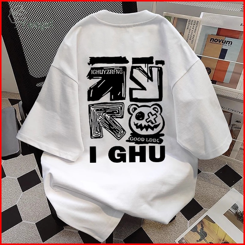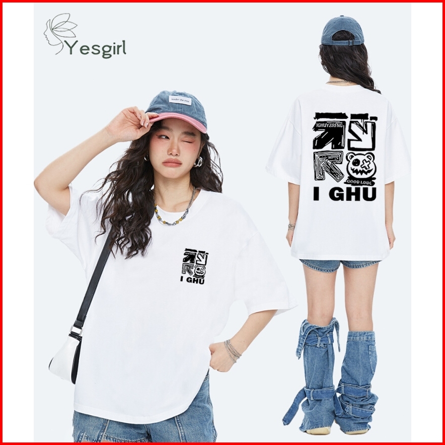 Yesgirl Beruang Retro Amerika Cetak Kaos Kasual Longgar Kaos Oversize Wanita Fashion Korean Style Baju Kaos Oversize Baj