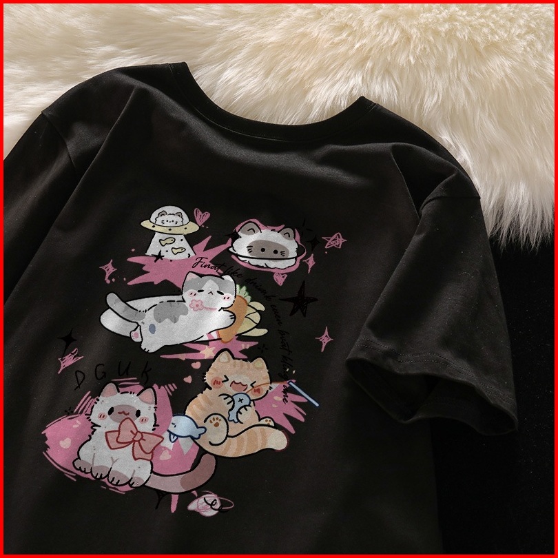 Yesgirl Kaos Oversize Cute Cat Space Series Korean Style Wanita Baju Atasan Wanita Terbaru 2.19