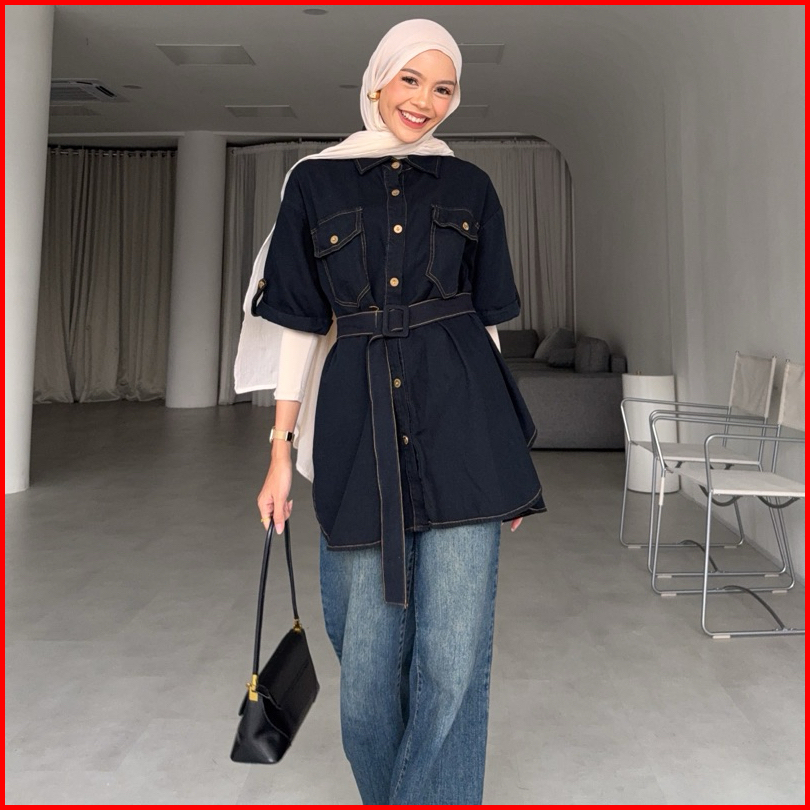 Irine By Yellowfacy Kode 680 Kemeja Denim Lengan Pendek Jeans