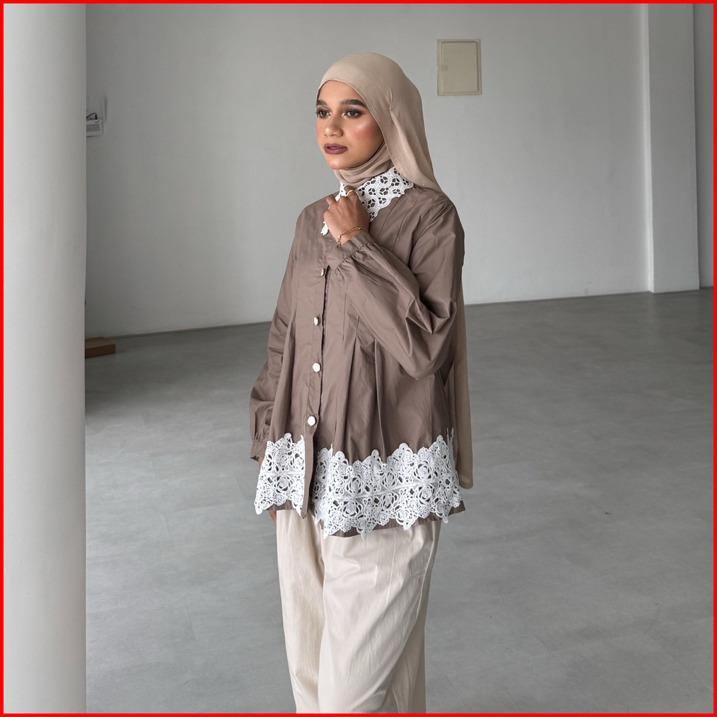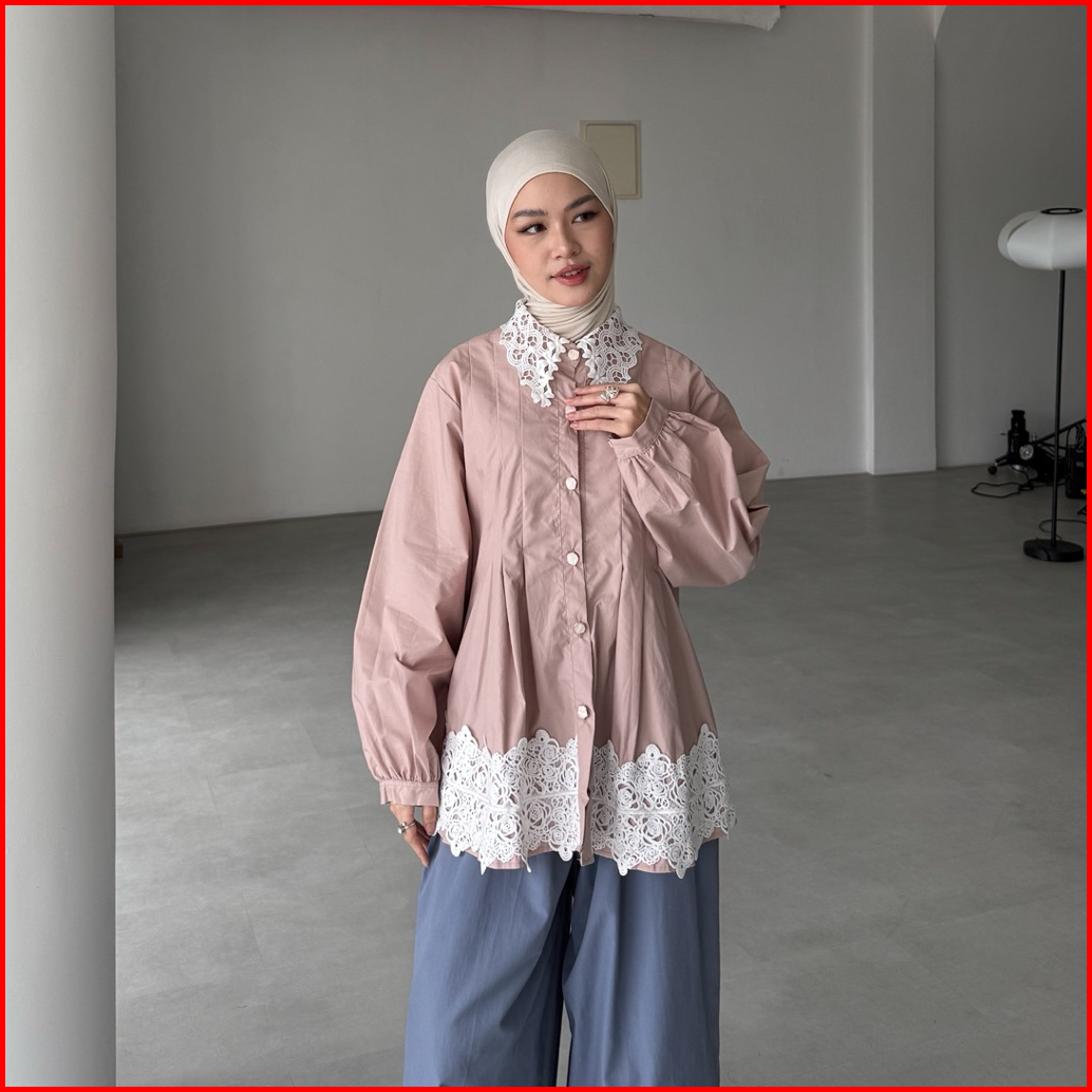 Tajana By Yellowfacy Kode 712 Atasan Wanita Blouse Kemeja Cotton Cashmere Babydoll Renda
