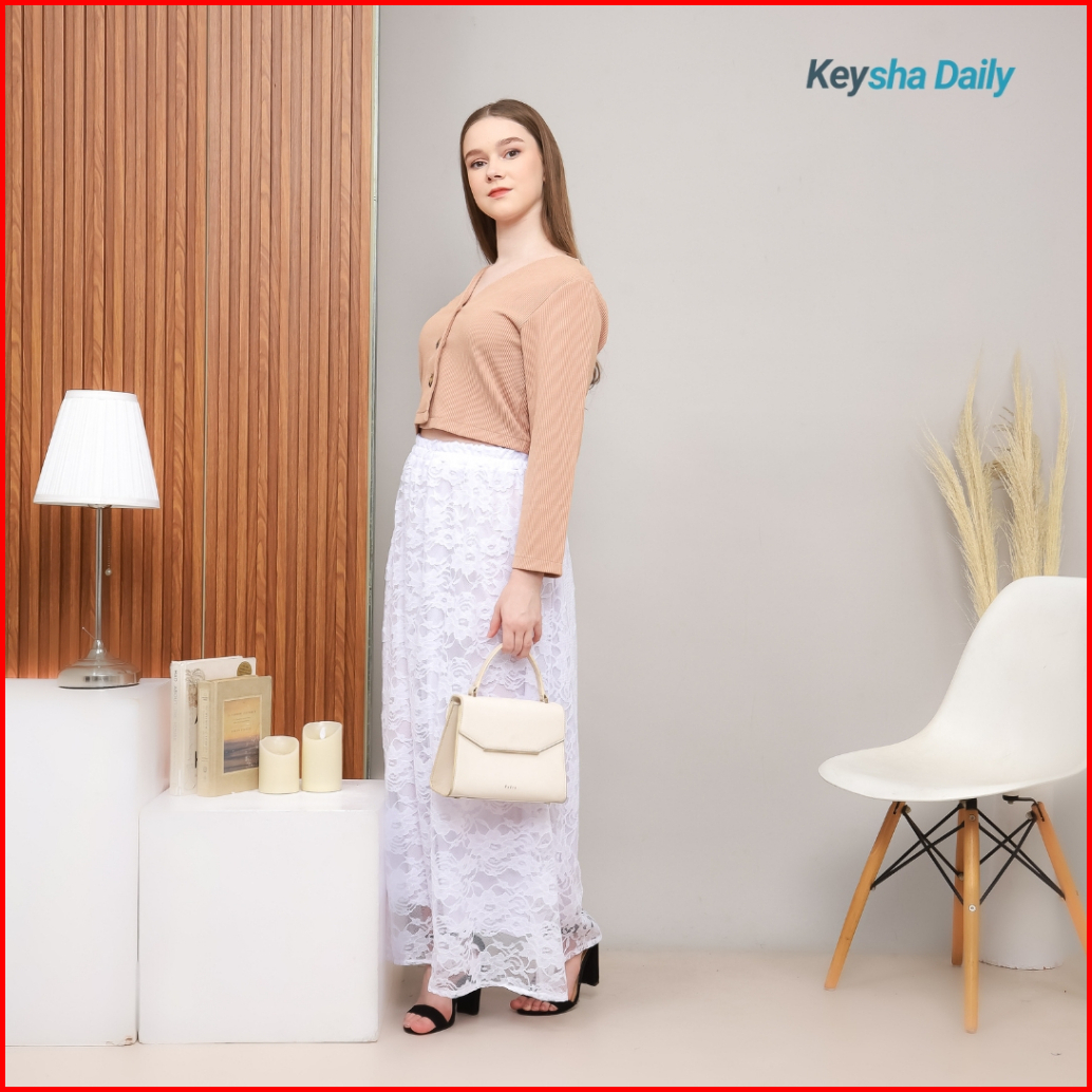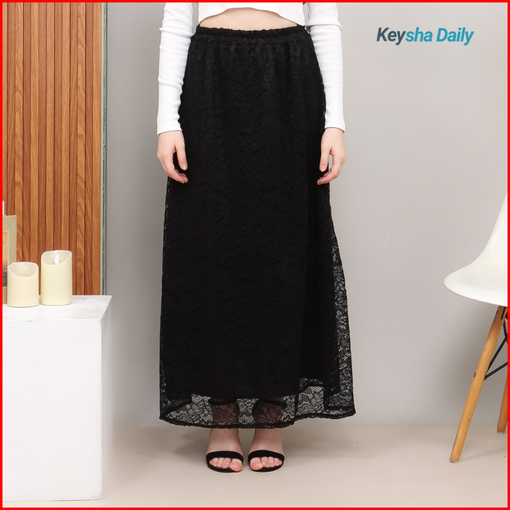 Keysha Daily Wear - Rok Wanita Termurah Neysa Lace Skirt Bahan Brokat Mix Puring Rok Remaja Casual Modern Modis Skirt Ke
