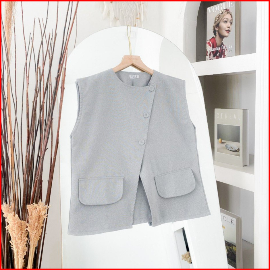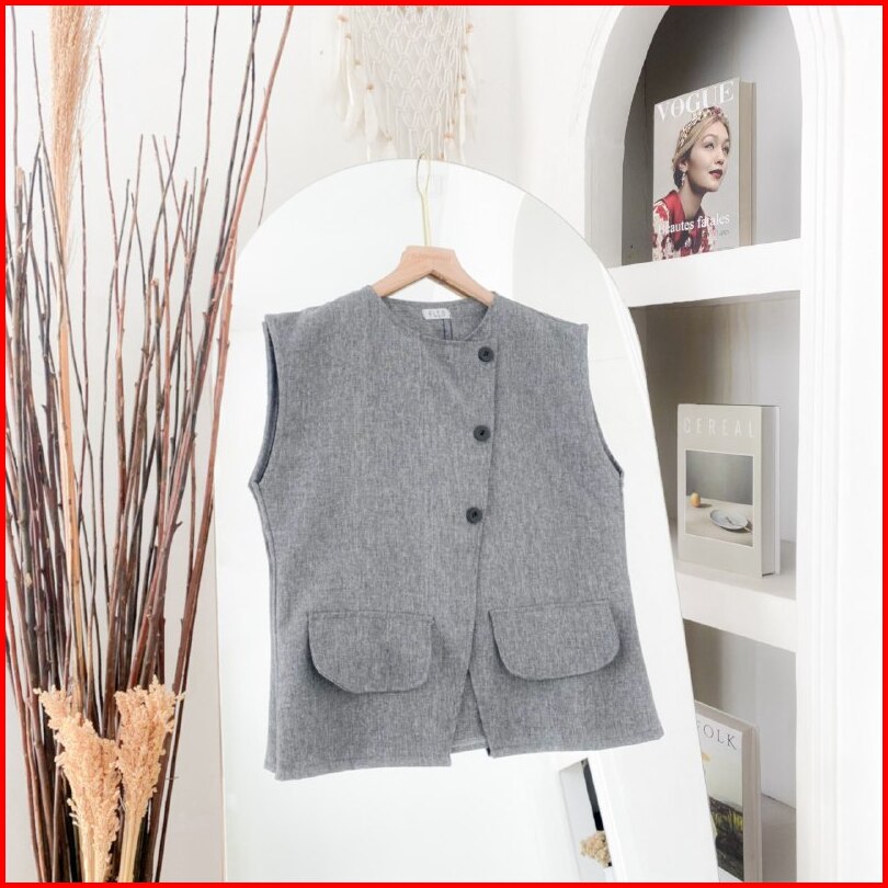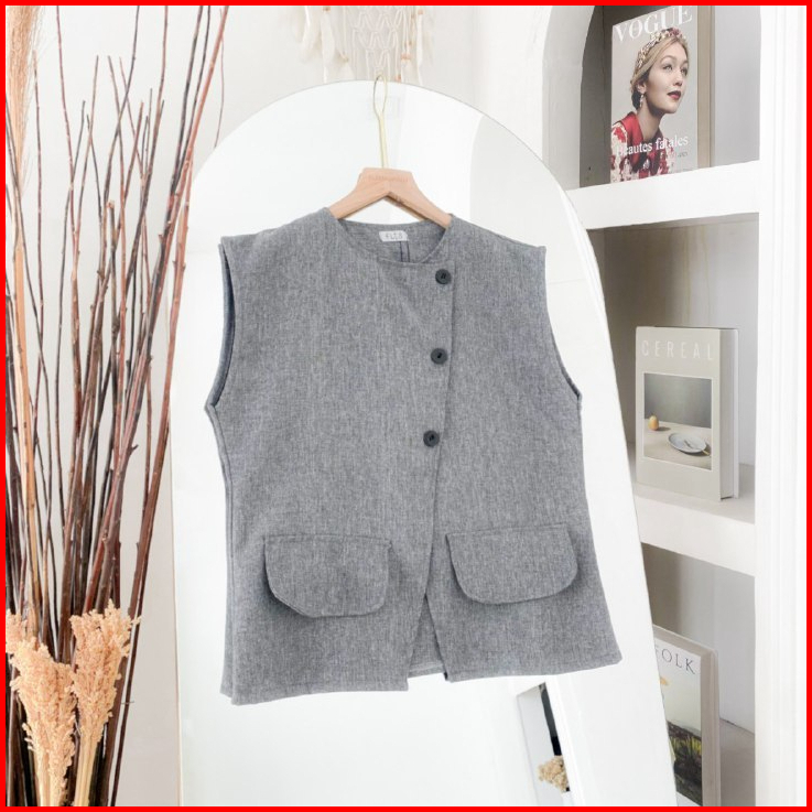 Roman Vest Top Atasan Kemeja Rompi Wanita Remaja Basic Casual Daily Korean Style Matt Linen Premium Ootd Fashion Terlari