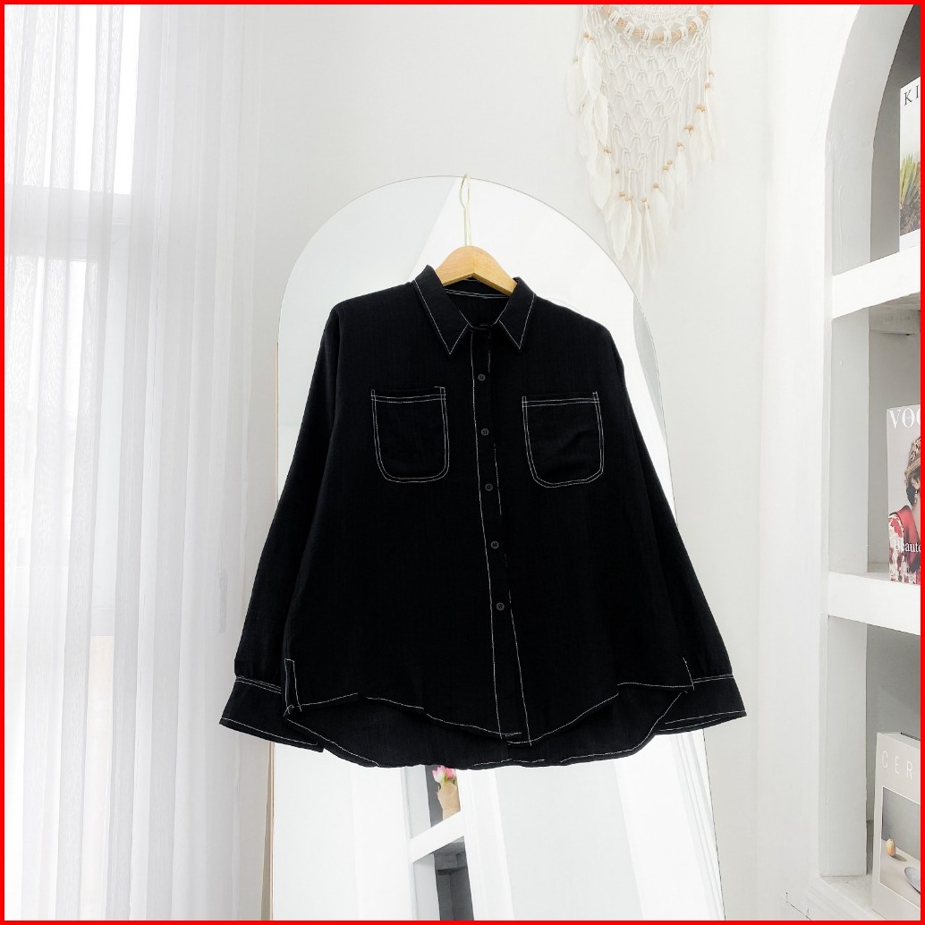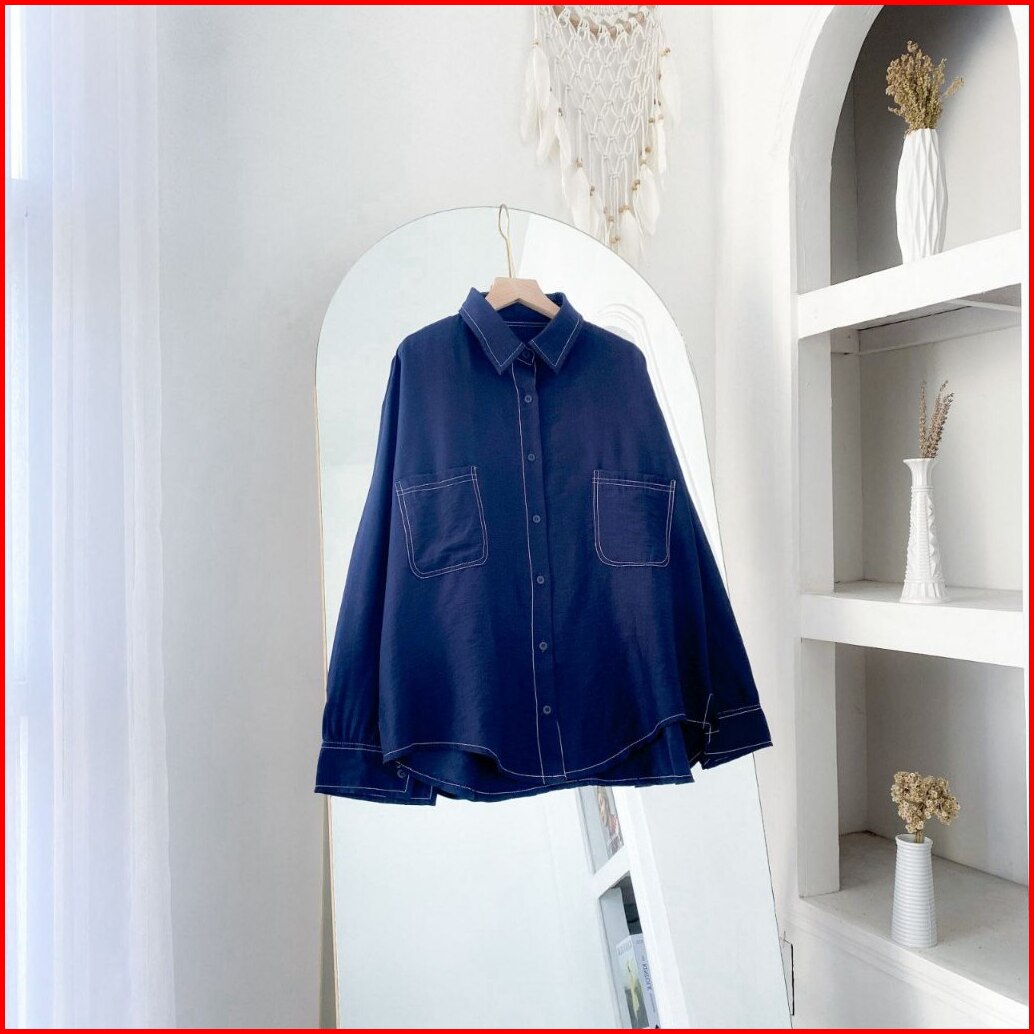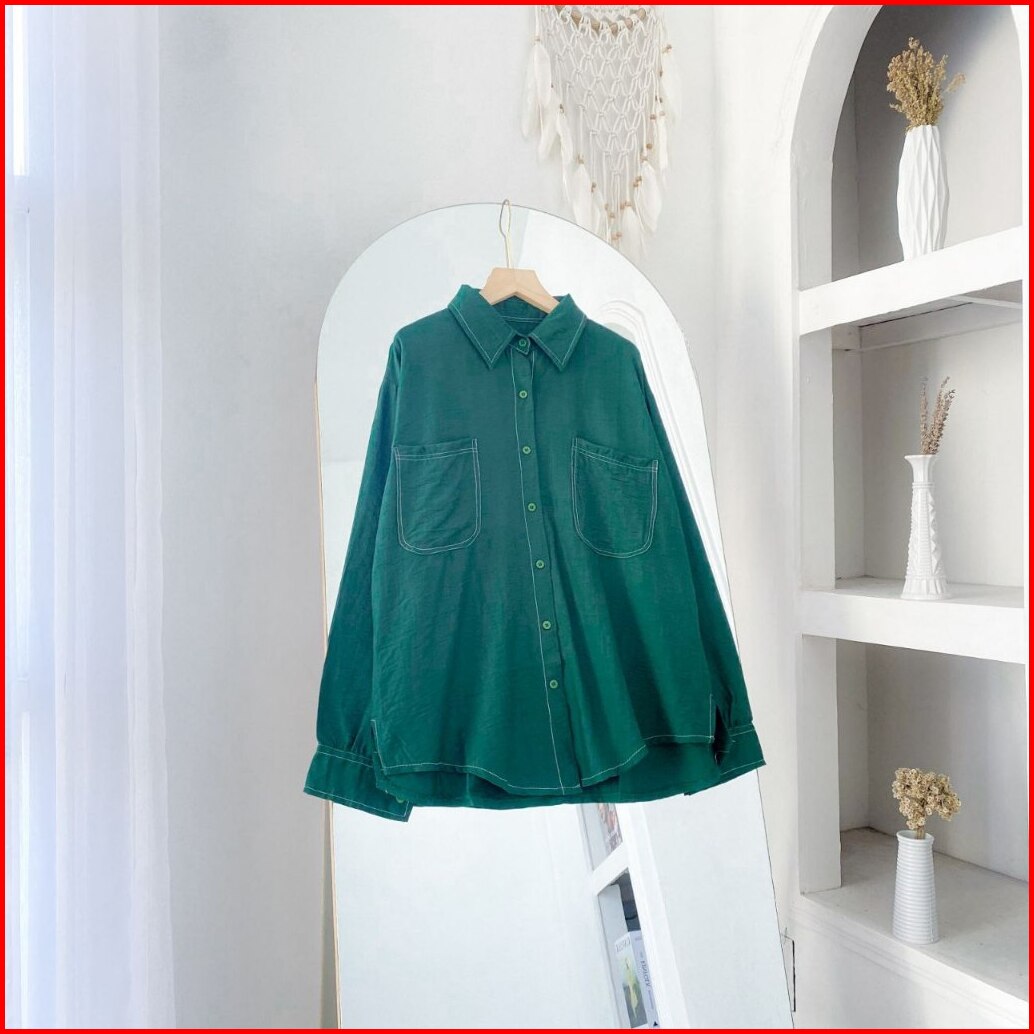Keysha Daily Wear Ruby Shirt Kemeja Basic Polo Linen Kemeja Wanita Lengan Panjang Kemeja Wanita Korean Style Ootd Atasan