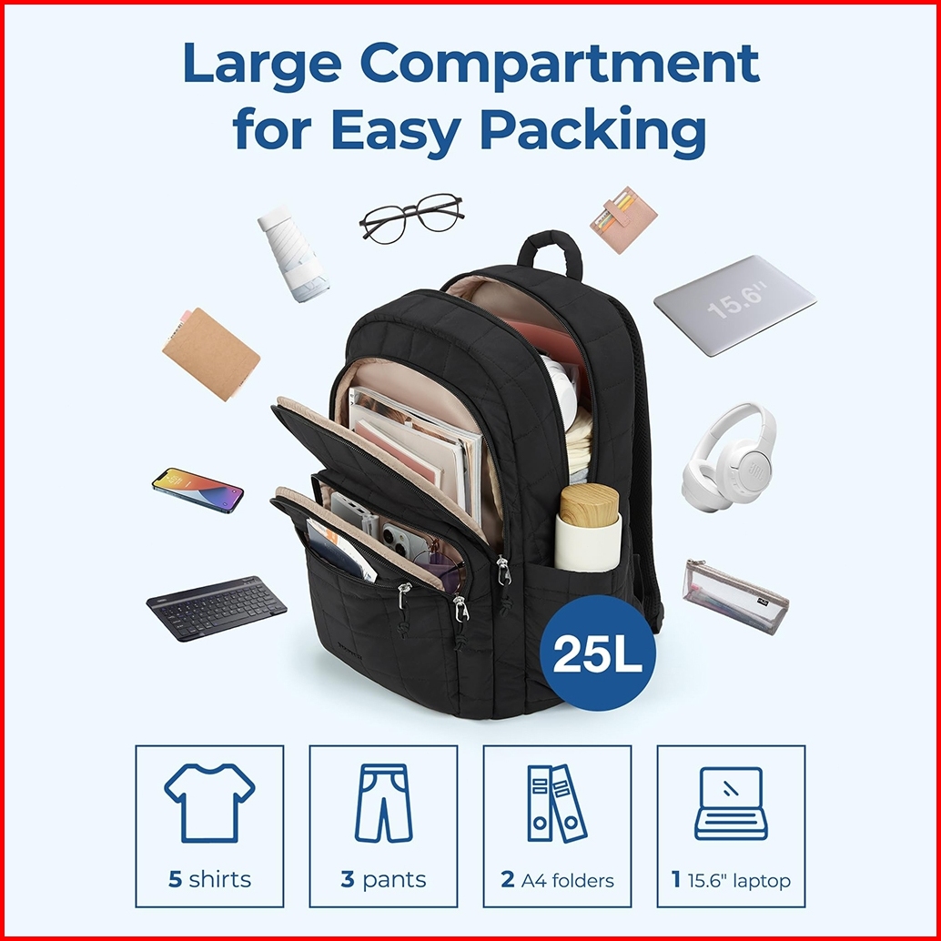 Bagsmart Casual Laptop Backpack 15.6inch Lightweight Quilted College Business Daypack For Women Men