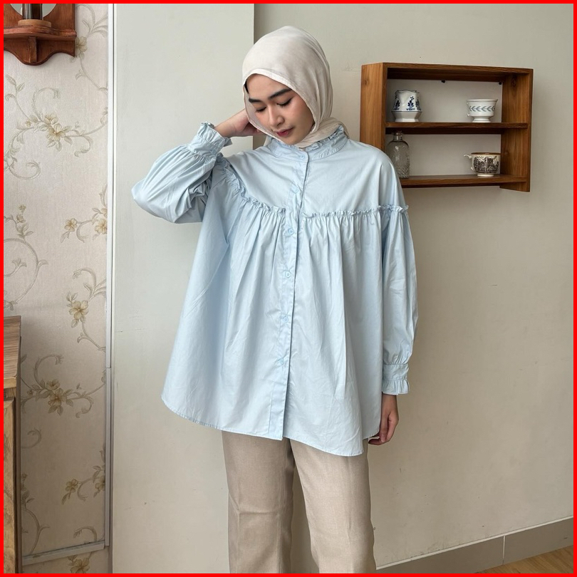 Maudy - By Yellowfacy 659 Atasan Baju Katun Basic Casual Blouse Wanita Ruffle Sabrina Kemeja Kerja Casual
