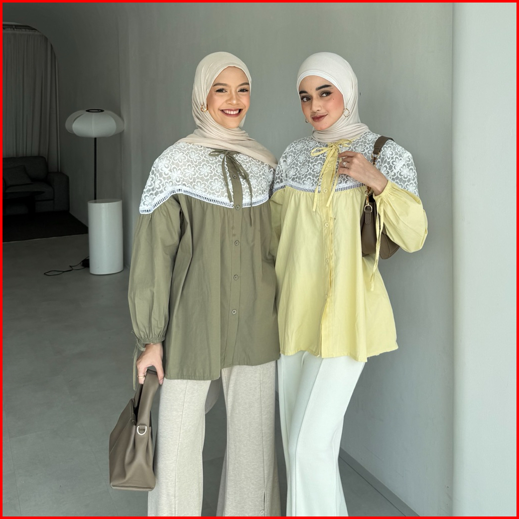 Febiola By Yellowfacy Kode 1823 Baju Atasan Wanita Katun Poplin Kemeja Shirt Lace Casual Bigsize