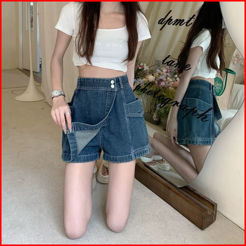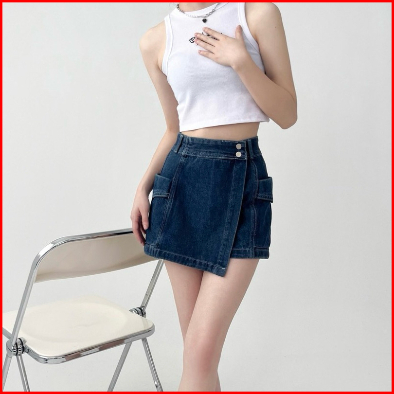 Beevalue Celana Skort Rok Jeans Pendek Wanita Highwaist Side Pocket Bahan Premium Skort Jeans Cargo Street Wear Korean S