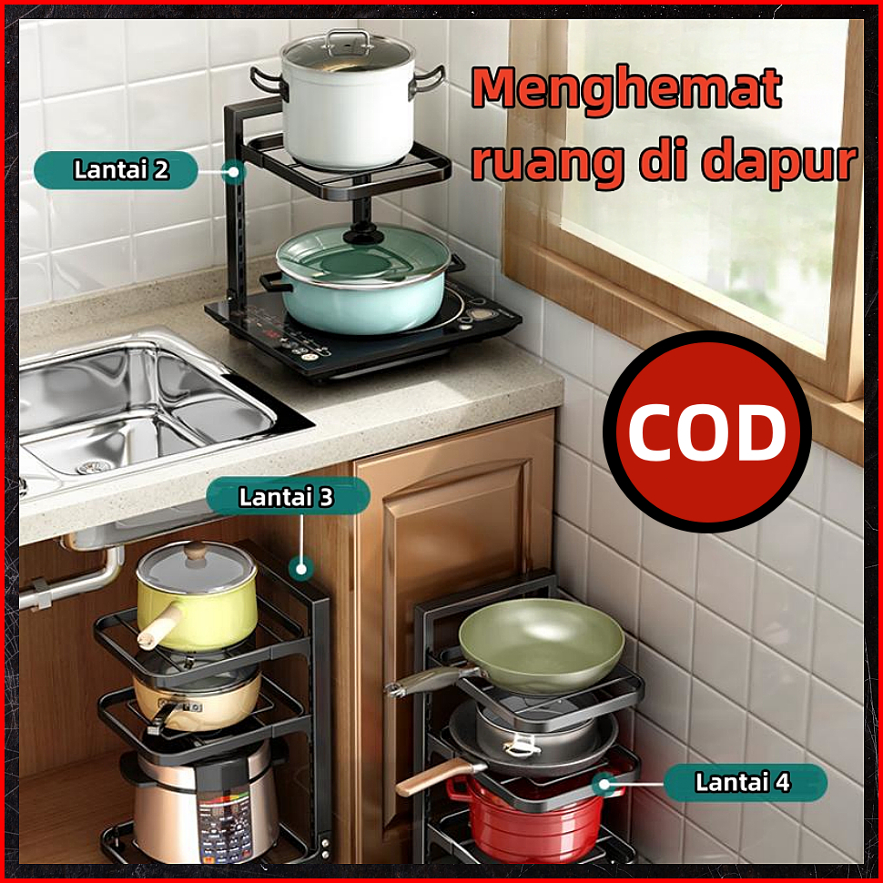 Abc Bear Rak Penyimpanan Pot Stainless Steel 2 3 4 Tingkat