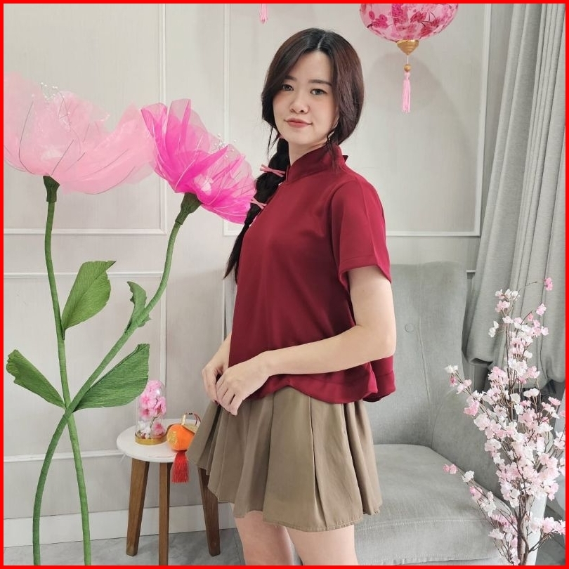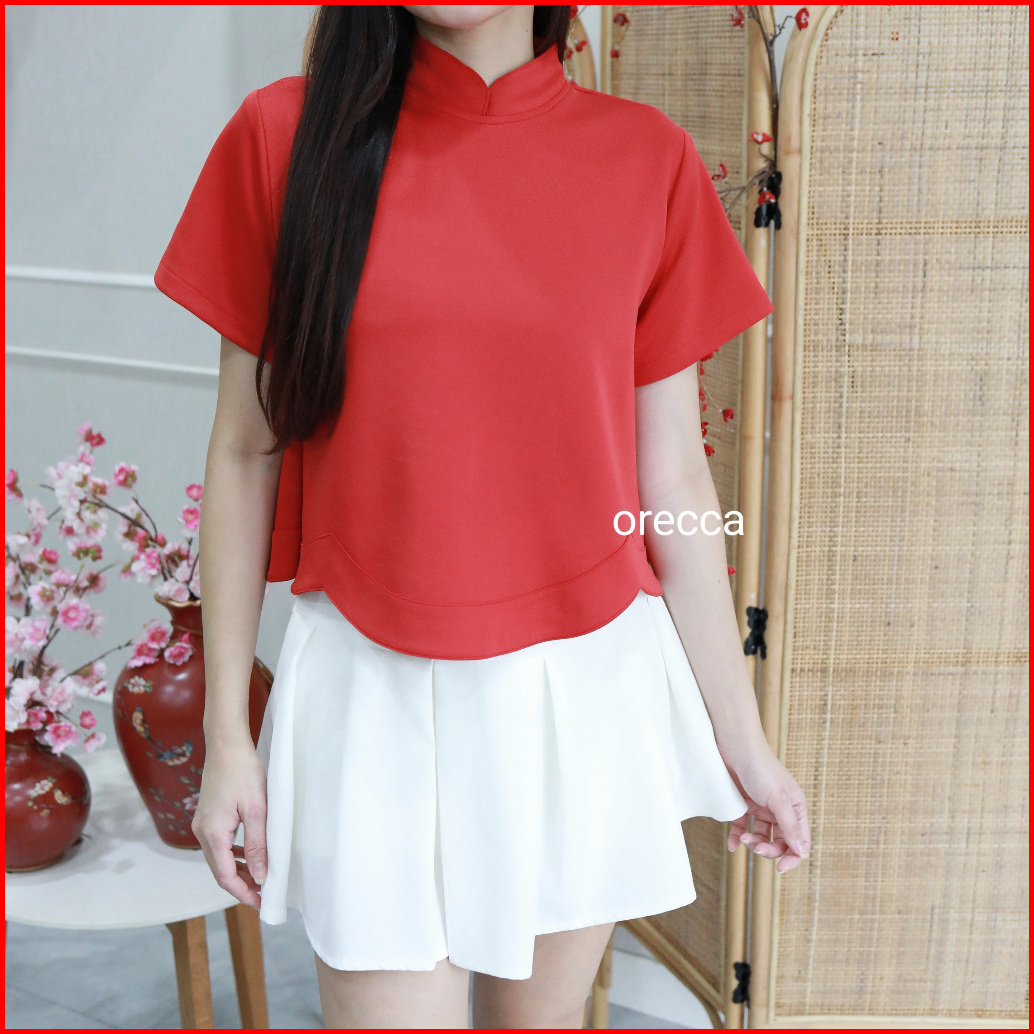 Orecca - Liu Red Top Imlek Atasan Tangan Pendek Merah