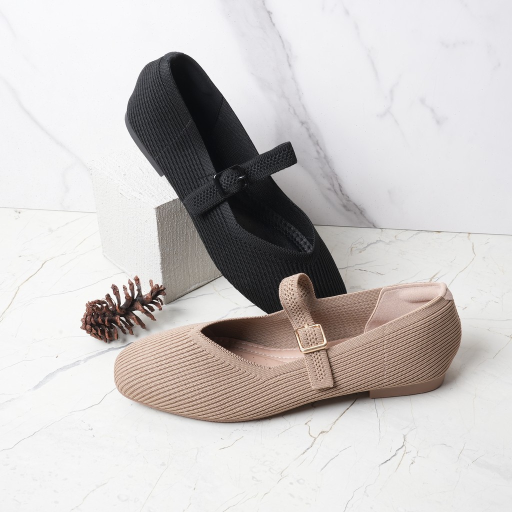 Peter Keiza Sepatu Balet Flat Wanita Bahan Kain Rajut Breathable Korean Style | Koleksi WC05