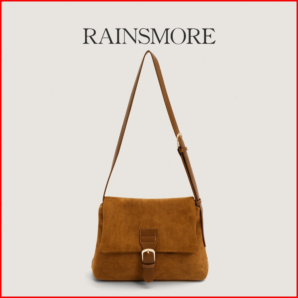 Rainsmore Tas Wanita Korea 2025 Model Vintage Suede Desain Unik Fashionable Tas Selempang Kotak Untuk Kerja