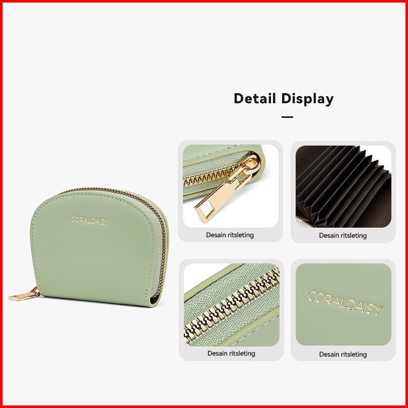 Coraldaisy Tas Wanita 2025 Terbaru Card Holder Fashion Setengah Bulat Ritsleting Dompet Tempat Kartu