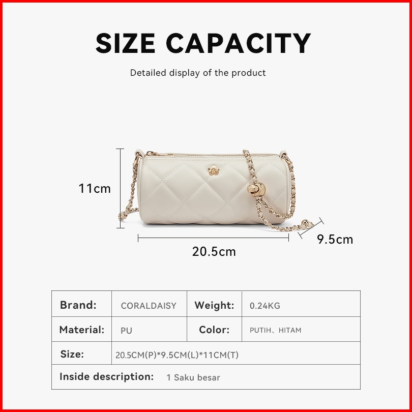 Coraldaisy Tas Wanita 2025 Terbaru Slingbag Silinder Tas Selempang Tas Bahu Lucu Rantai Tas Kecil