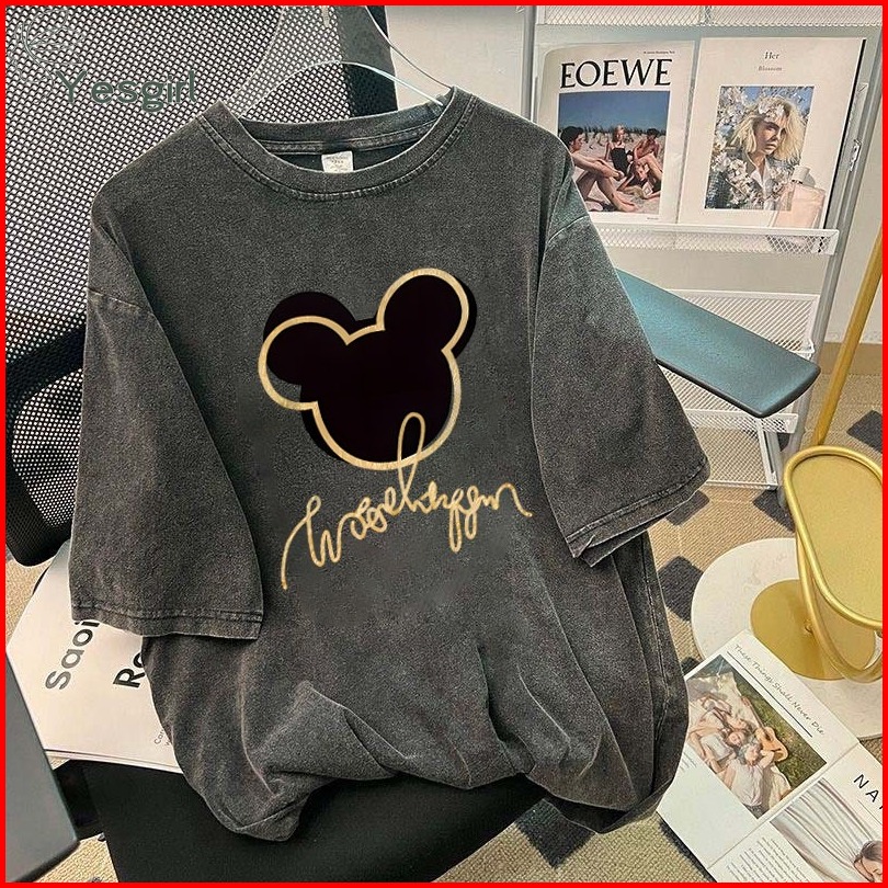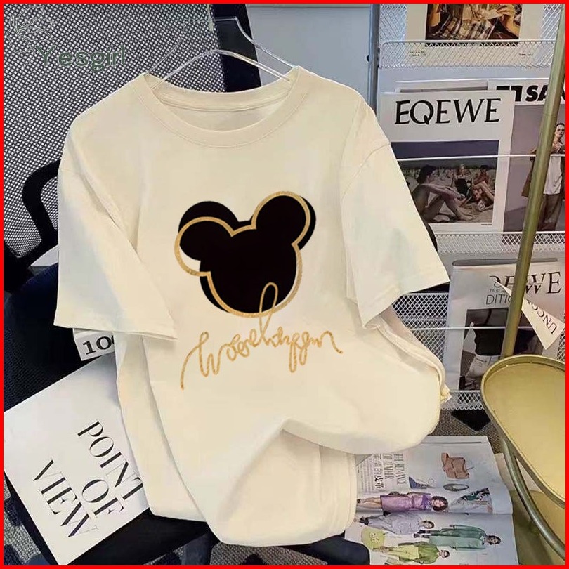 Yesgirl Korea Style Mickey Mouse Print Kaos Kasual Longgar Kaos Oversize Wanita Fashion Korean Style Baju Kaos Oversize