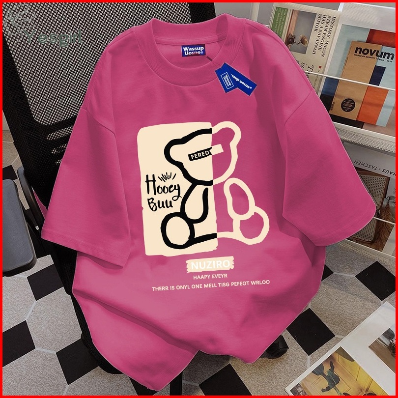 Yesgirl Korea Style Beruang Lucu Print Kaos Kasual Longgar Kaos Oversize Wanita Fashion Korean Style Baju Kaos Oversize