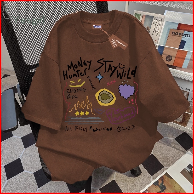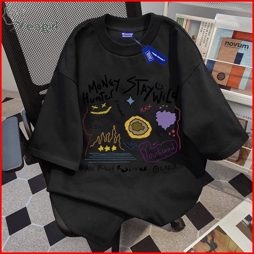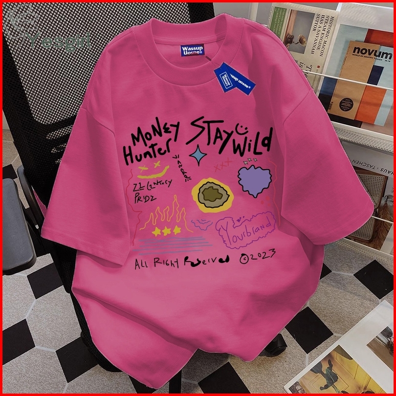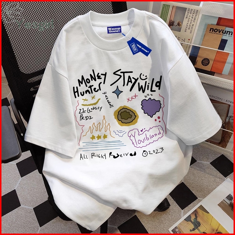 Yesgirl Korea Style Karya Seni Grafiti Print Kaos Kasual Longgar Kaos Oversize Wanita Fashion Korean Style Baju Kaos Ove