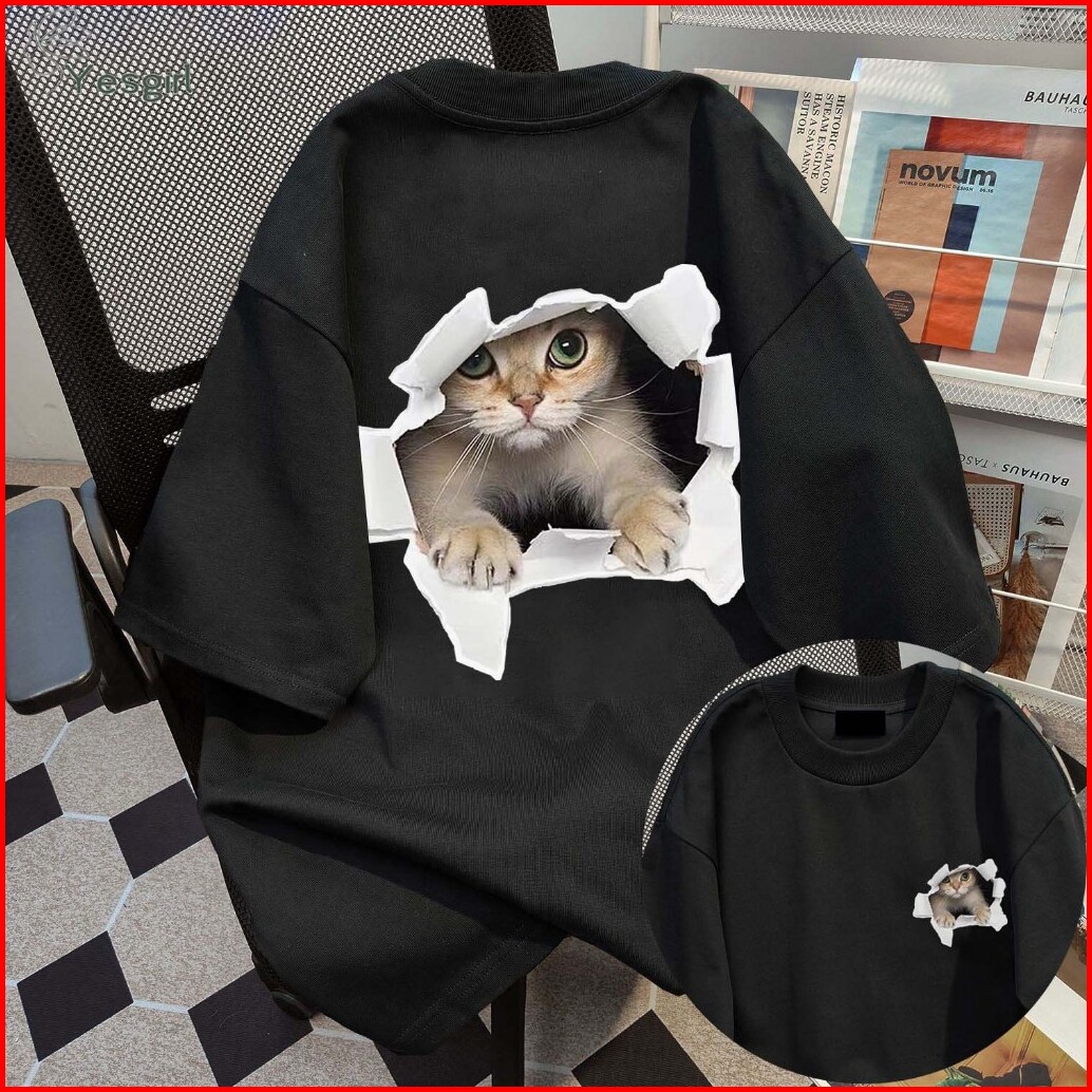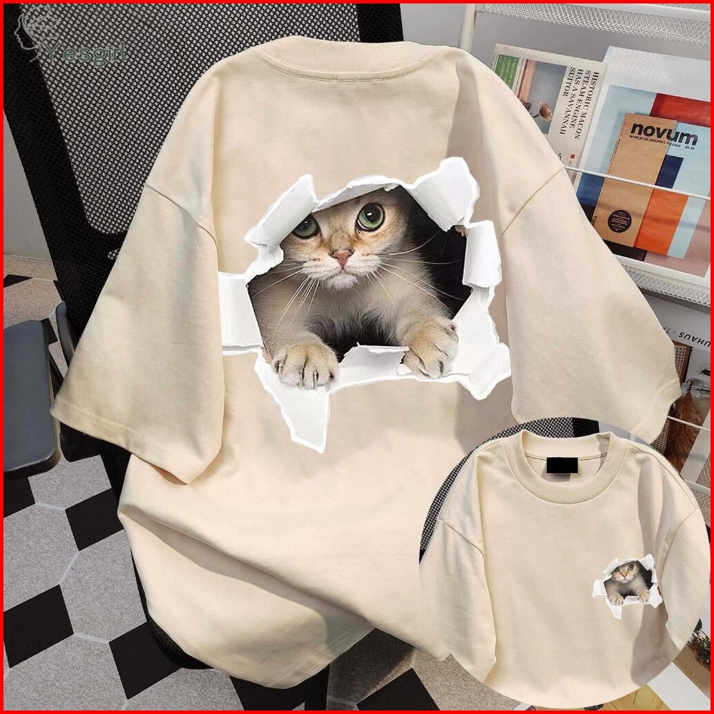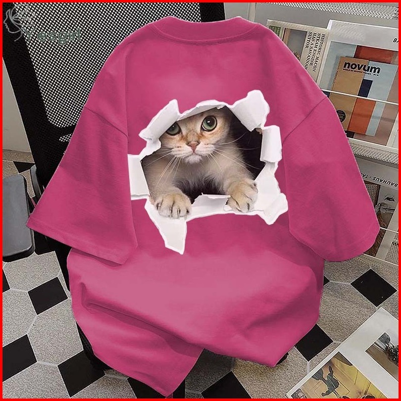 Yesgirl Korea Style Kucing Menjulurkan Kepalanya Print Kaos Kasual Longgar Kaos Oversize Wanita Fashion Korean Style Baj