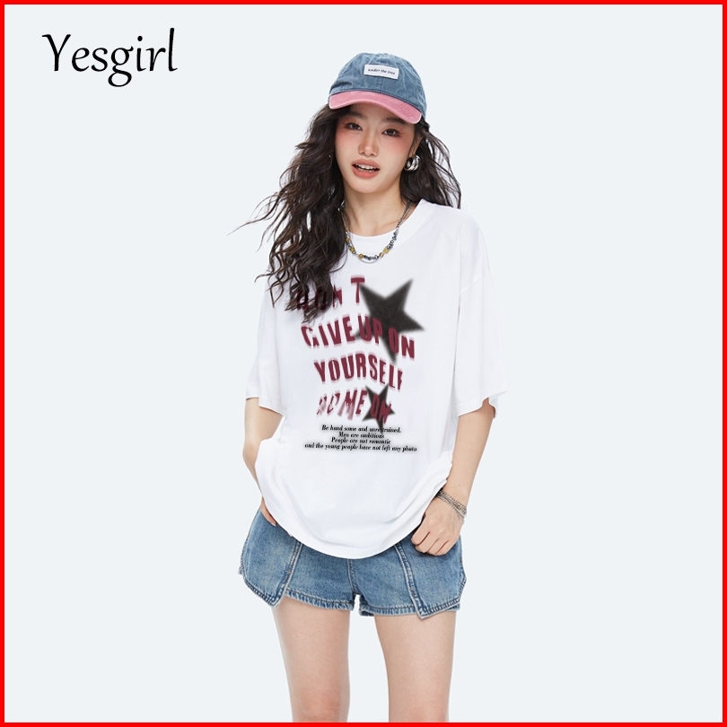 Yesgirl Korea Style Star Letters Fashion Print Kaos Kasual Longgar Kaos Oversize Wanita Fashion Korean Style Baju Kaos O