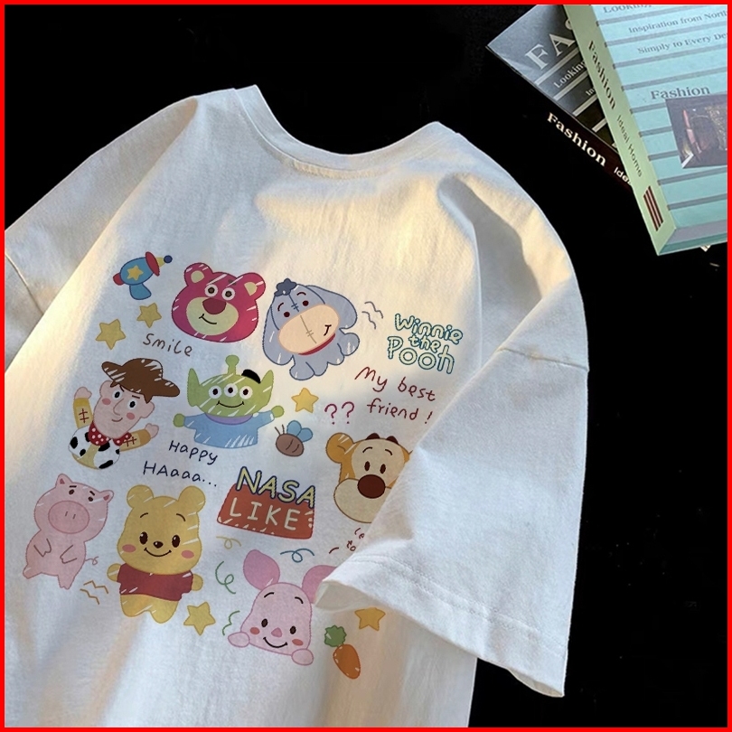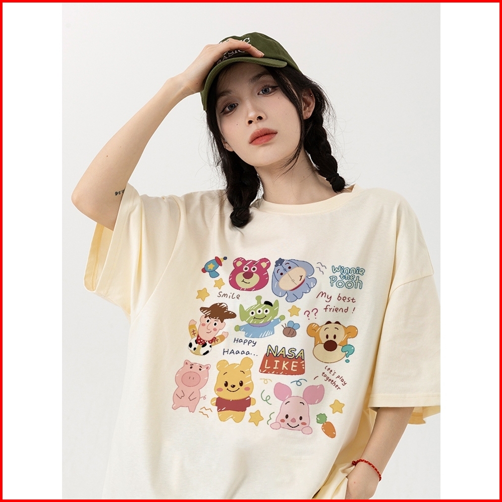 Yesgirl Pencetakan Pola Kartun Cotton Atasan Kaos Kaos Lucu Wanita T-shirt Lengan Pendek Baju Kaos Oversize Wanita Baju