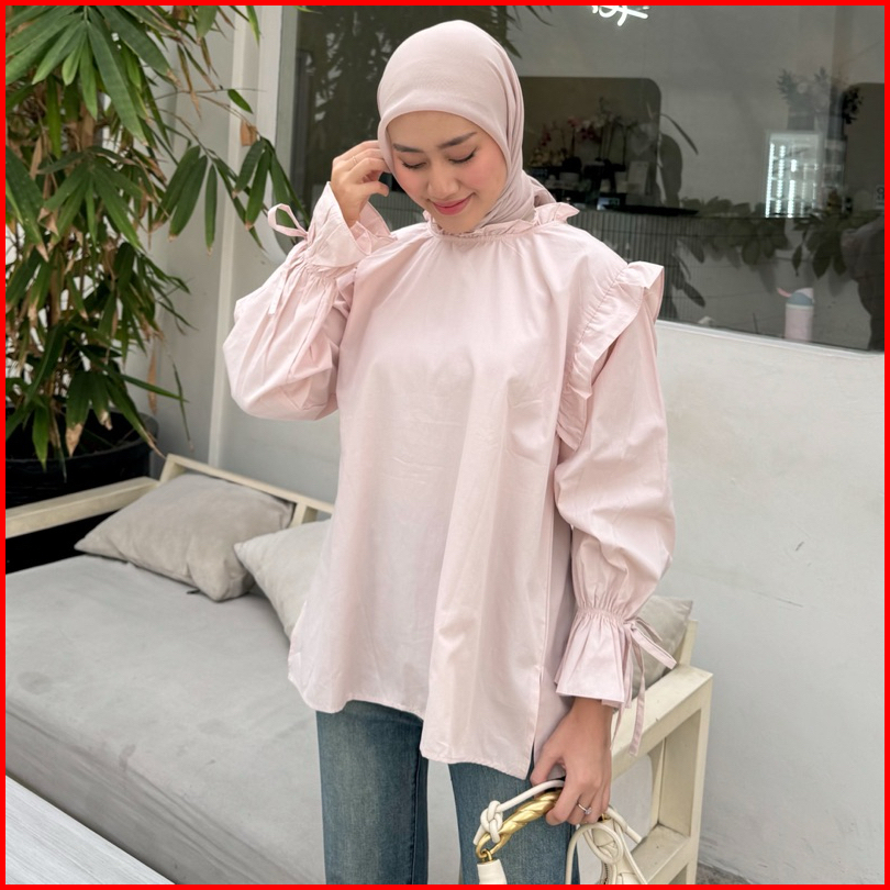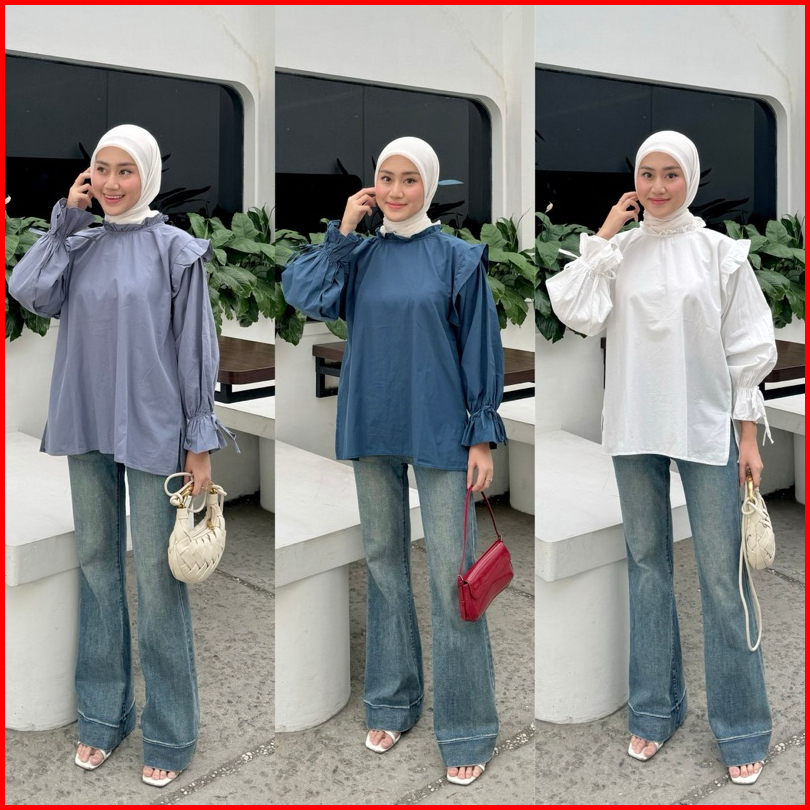 Mine - By Yellowfacy 1791 Blouse Poplin Baju Atasan Wanita Lengan Terompet Katun