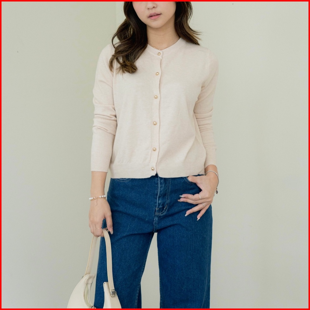 Asoka Sienna Cardi 3166 - Cardigan Button O-neck Knit Halus Leangan Panjang - Outer Basic Wanita