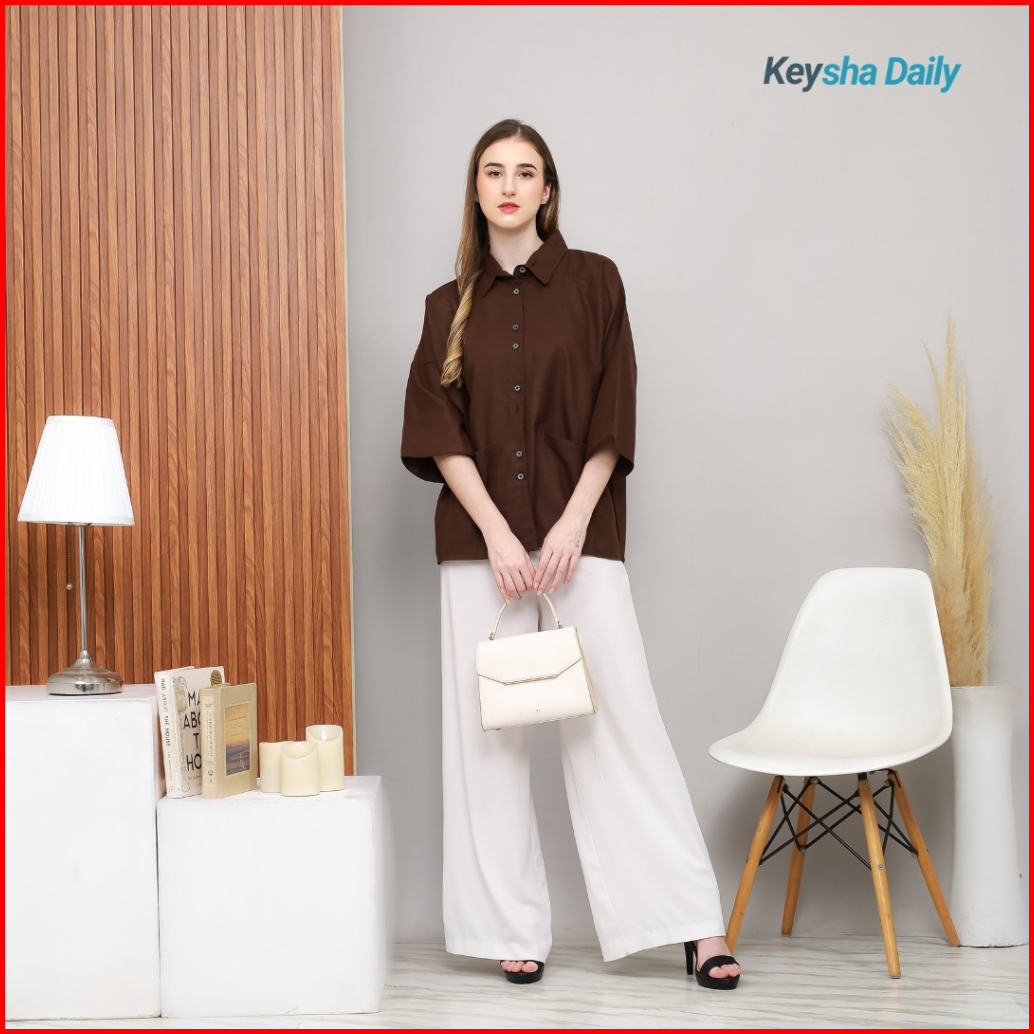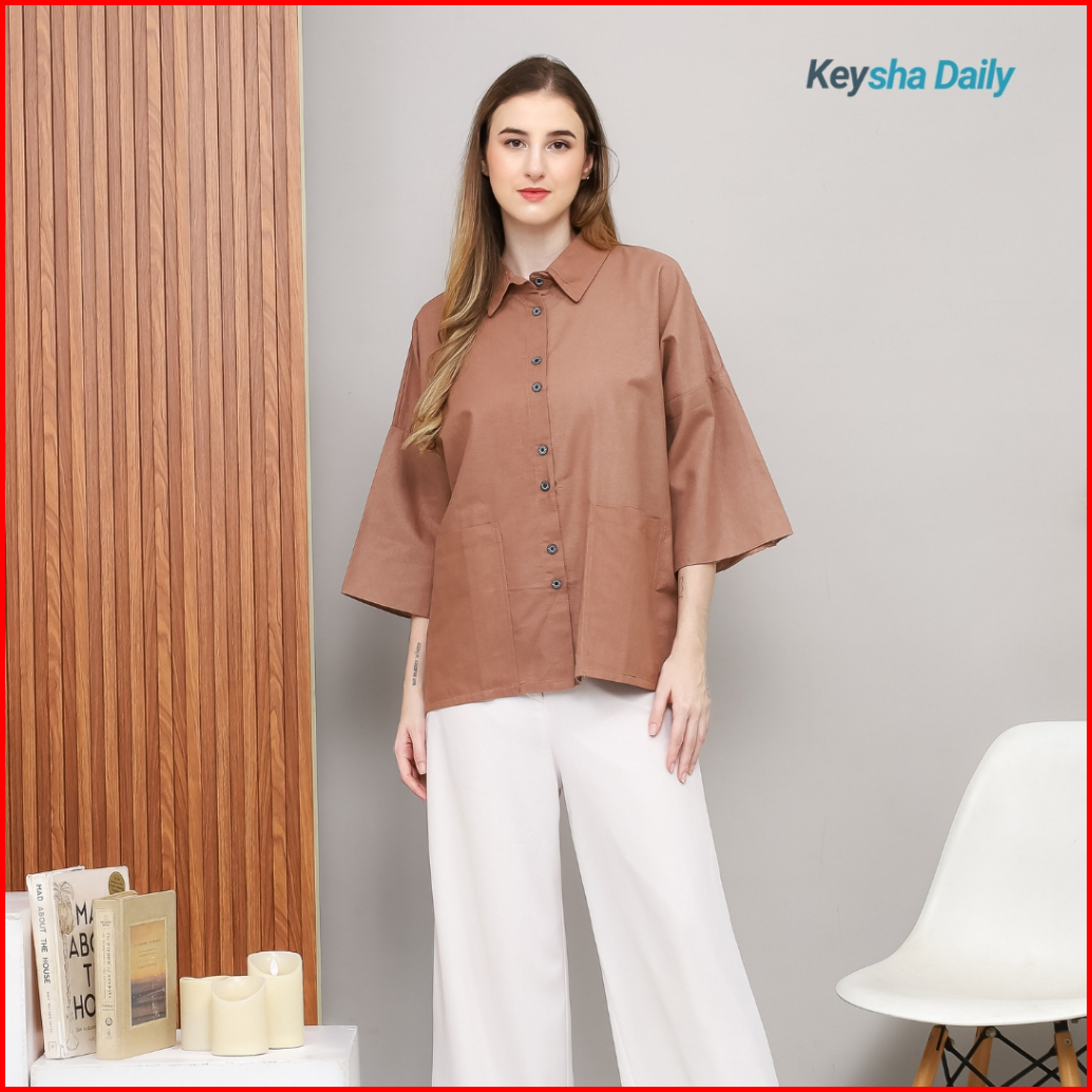 Keysha Daily Wear Safa Blouse Linen Wanita Basic Lengan Panjang Blouse Wanita Korean Style Kemeja Wanita Oversize Polos