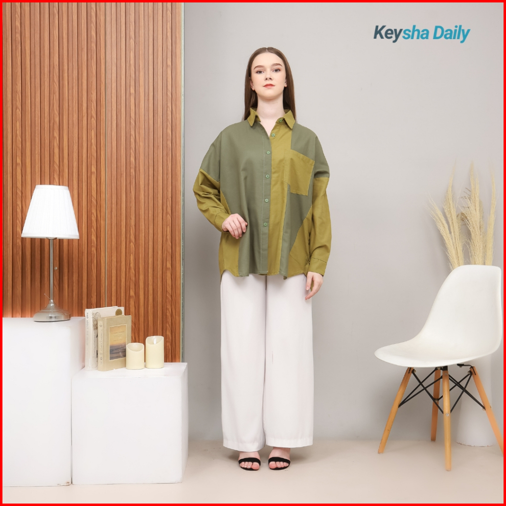 Keysha Daily Wear - Giara Shirt Oversize Top Atasan Kemeja Linen Wanita Dewasa Fashion Remaja Basic Kekinian Matt Linen