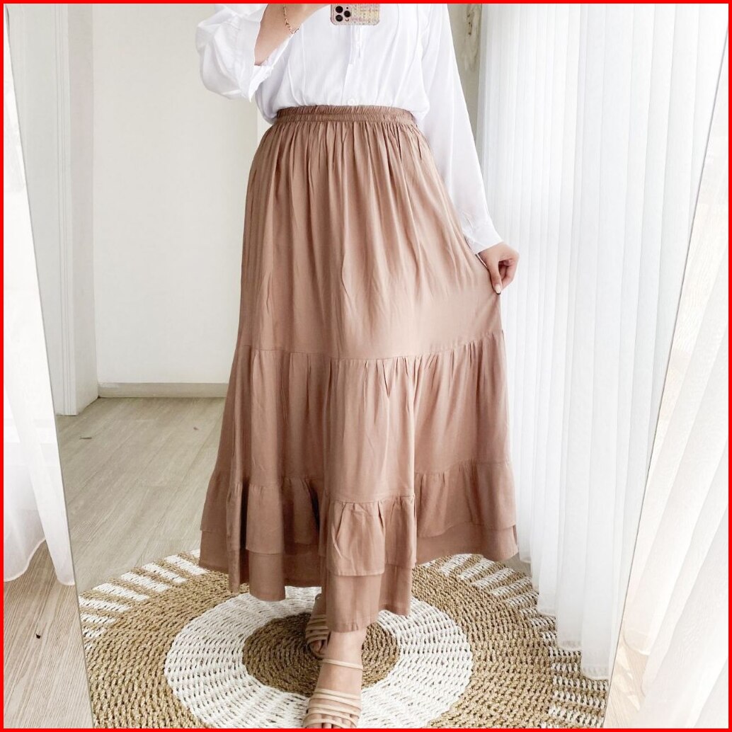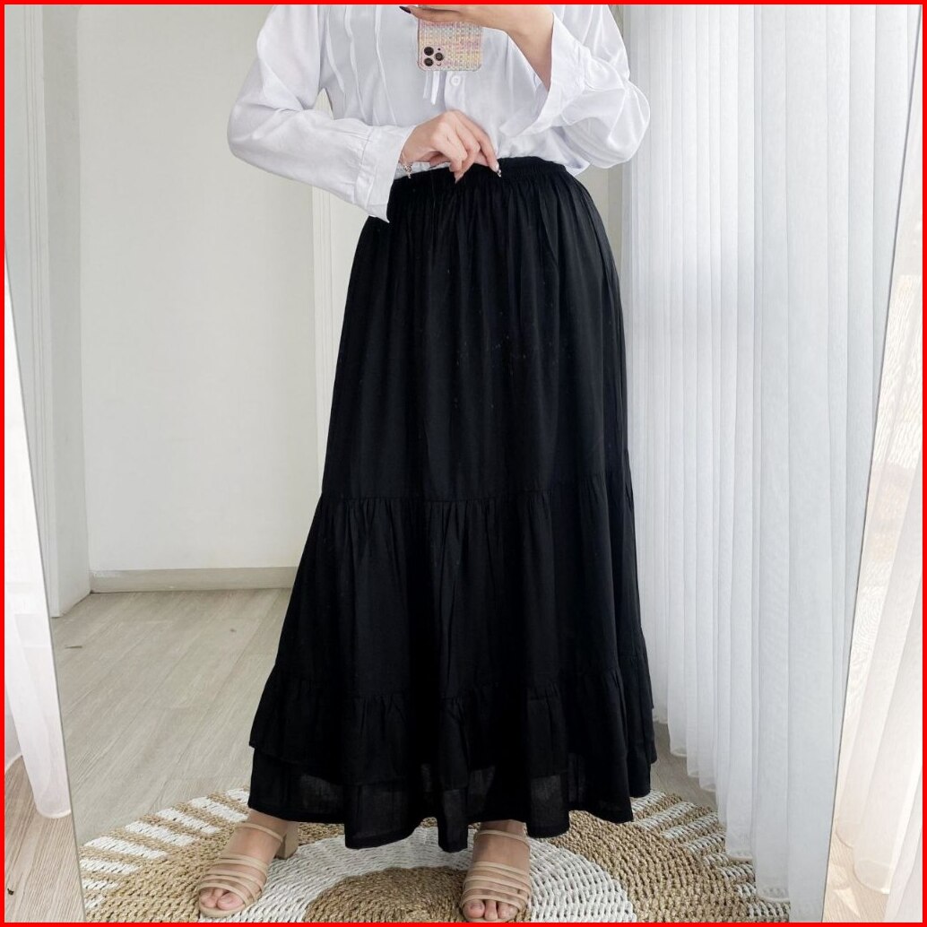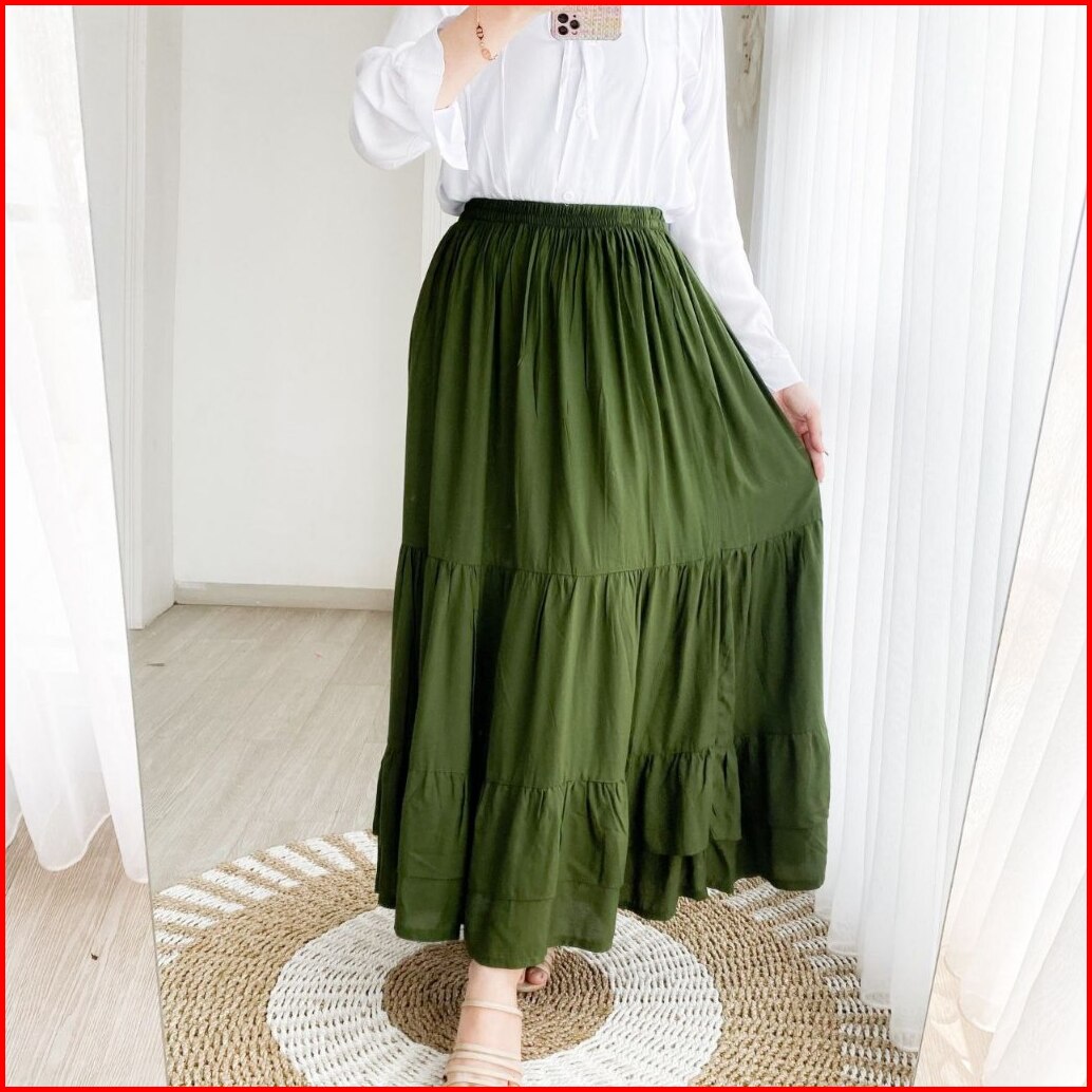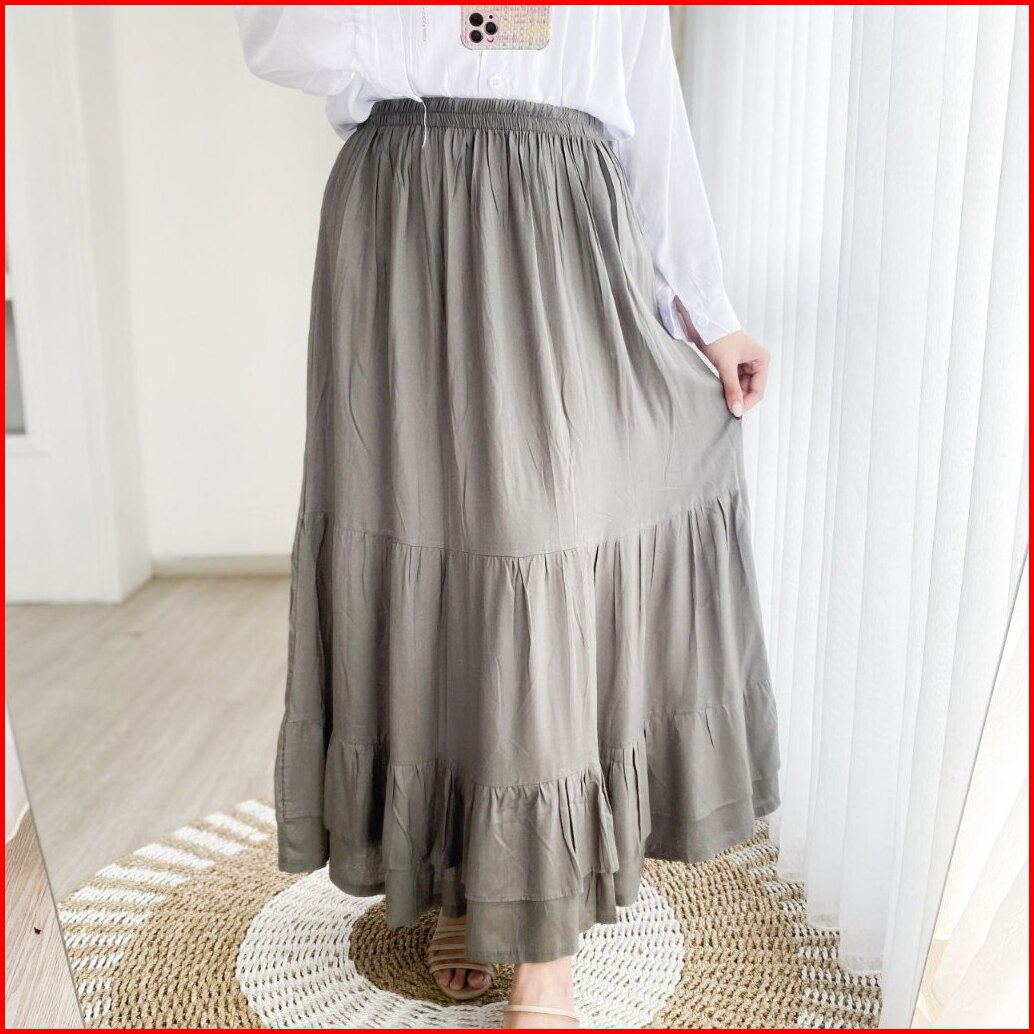 Keysha Daily Wear Kawai Skirt Rok Panjang Remple Katun Rayon Rok Wanita Flowy Casual Rok Wanita Korean Style Bawahan Wan