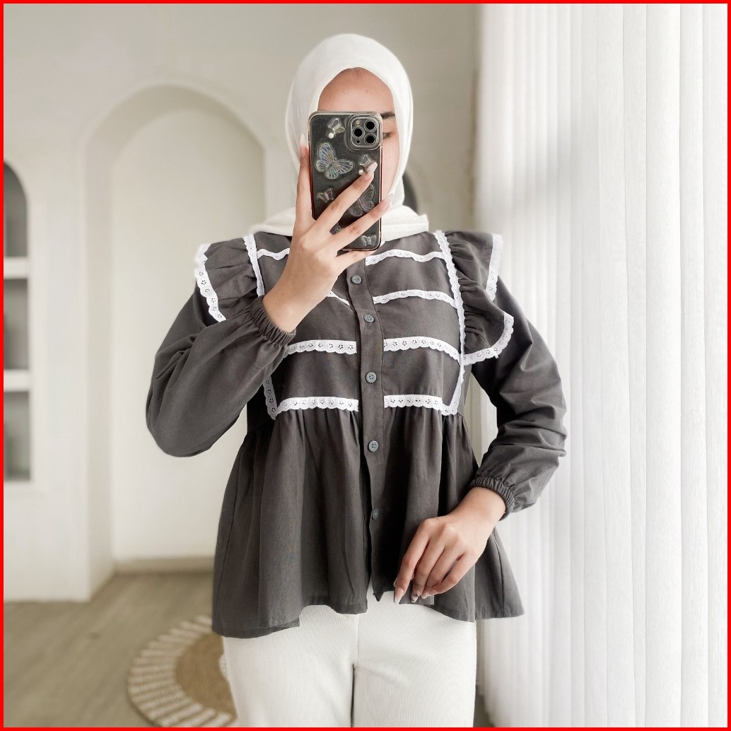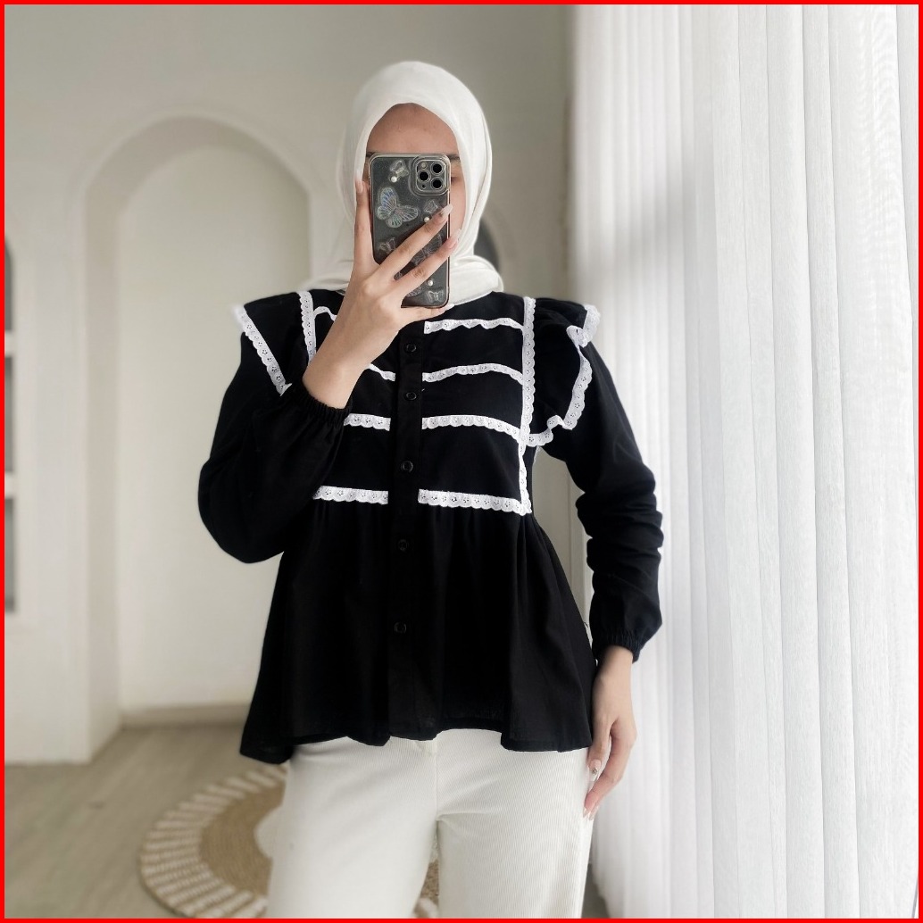 Keysha Daily Wear - Liyana Top Blouse Rempel Linen Angel Mix Renda Polos Atasan Wanita Basic