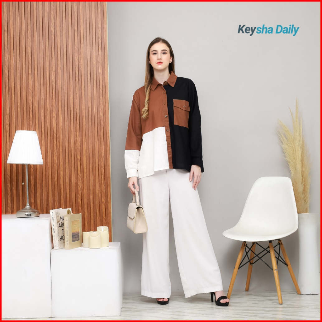 Keysha Daily Wear - Dierra Shirt Kemeja Formal Basic Linen Rami Full Kancing Kemeja Wanita Korea Kemeja Wanita Lengan Pa