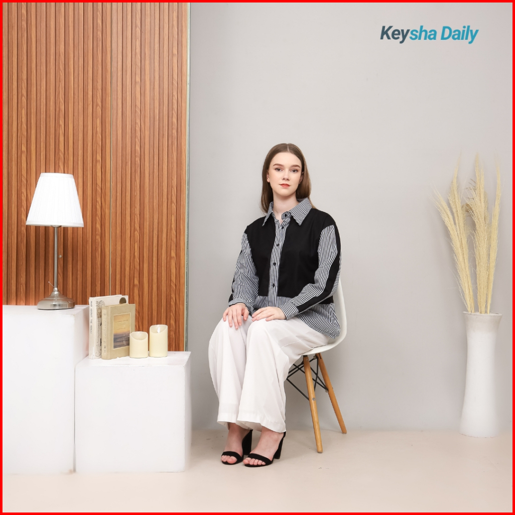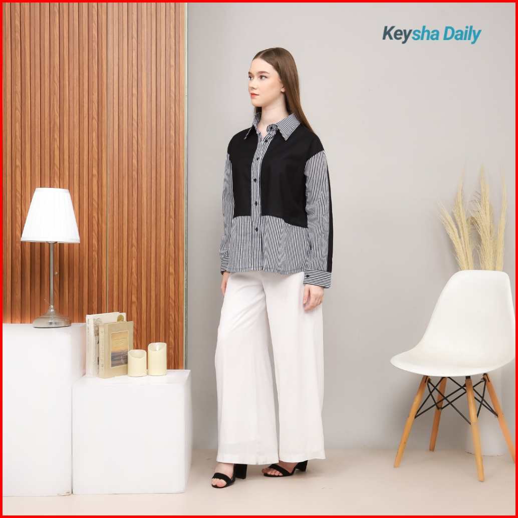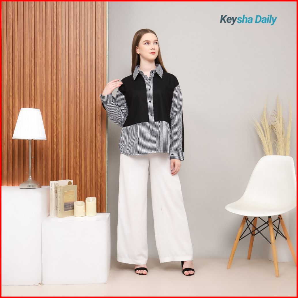 Keysha Daily Wear - Azka Shirt Kemeja Basic Top Atasan Wanita Fashion Remaja Trendy Casual Lengan Panjang Matt Linen Mix