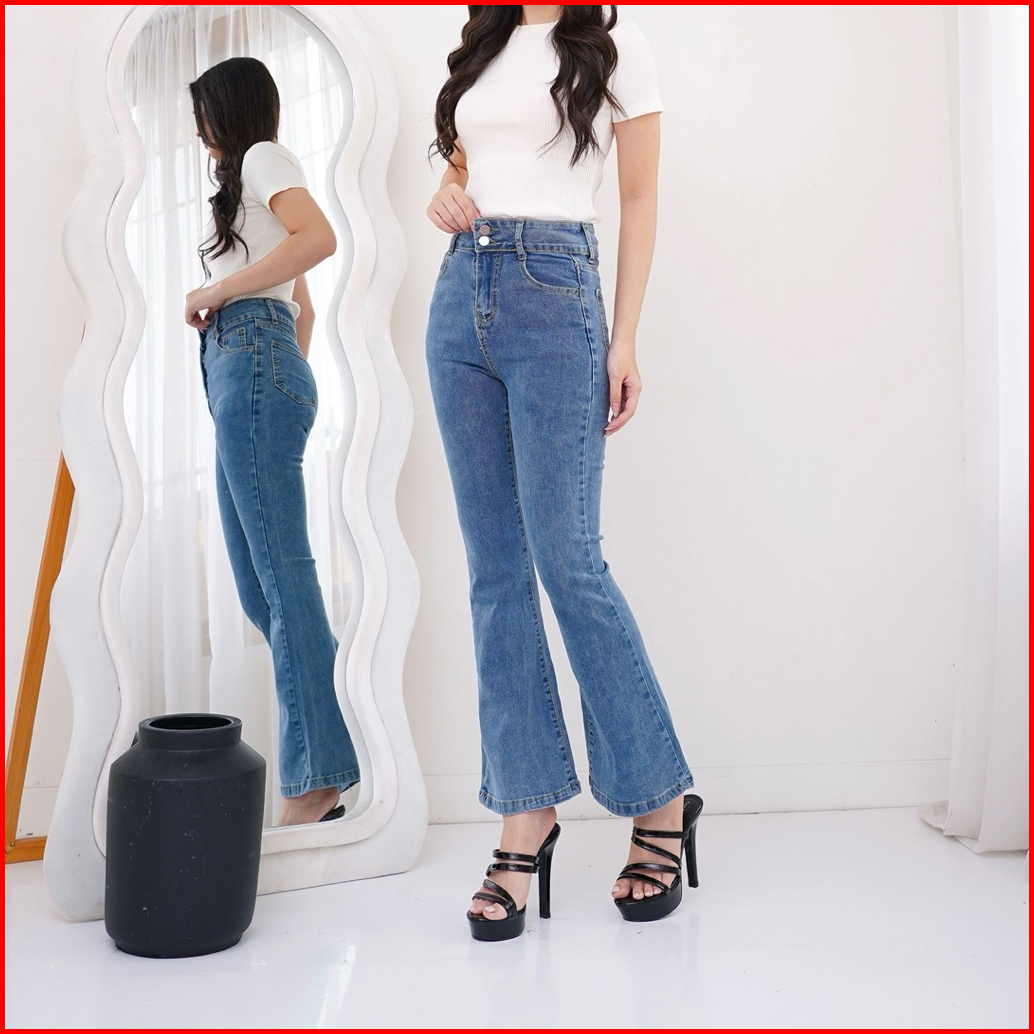 Beevalue Celana Jeans Cutbray Wanita Highwaist Fit And Flare Mermaid Jeans Bootcut Jeans Trumpet Jeans Bahan Stretchy Ng