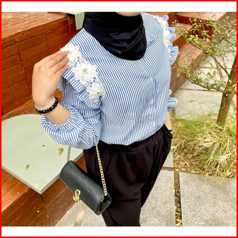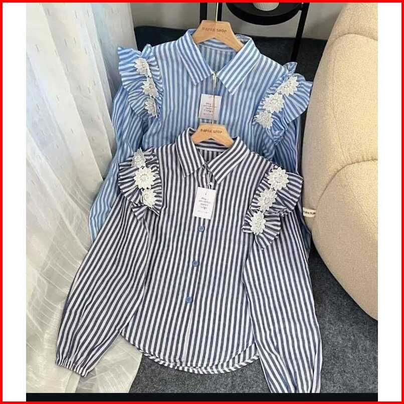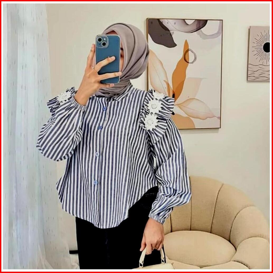 Atasan Stripe Wanita Blouse Salur Korean Style Casual Daily