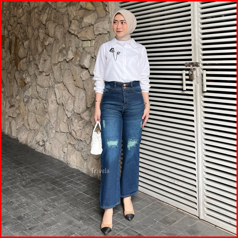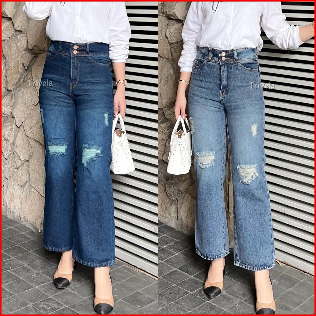 Trivela - Erica Cullotes Jeans 27-38 - Celana Jeans Spray Ripped Sobek Lapis Jumbo - Plainbf