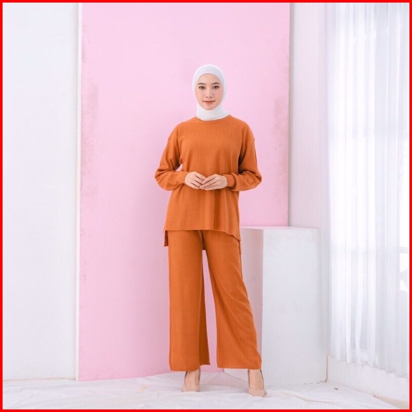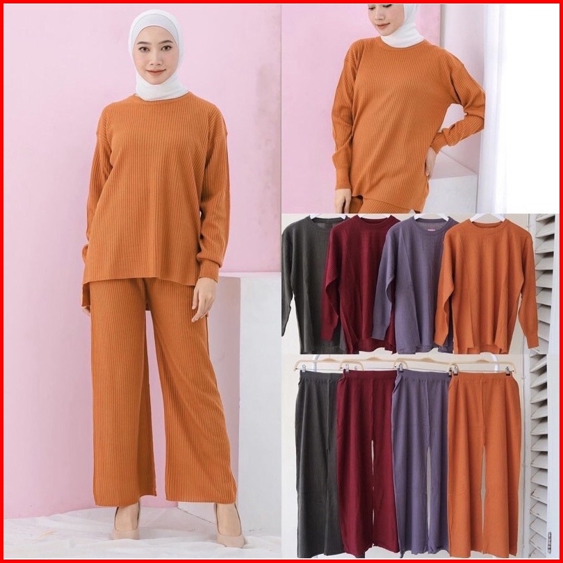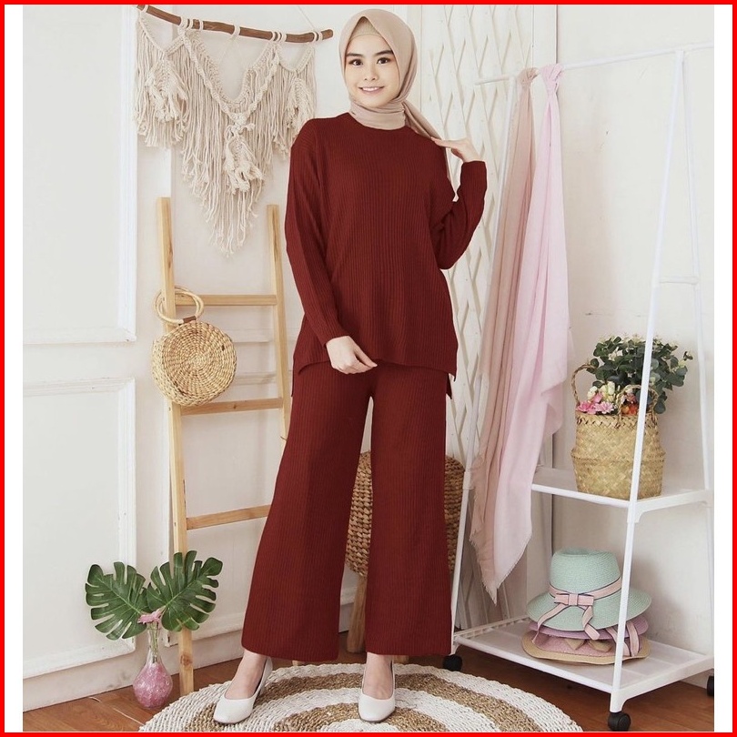 Stelan Celana Kulot Rajut Sweater Boxy Model Terbaru