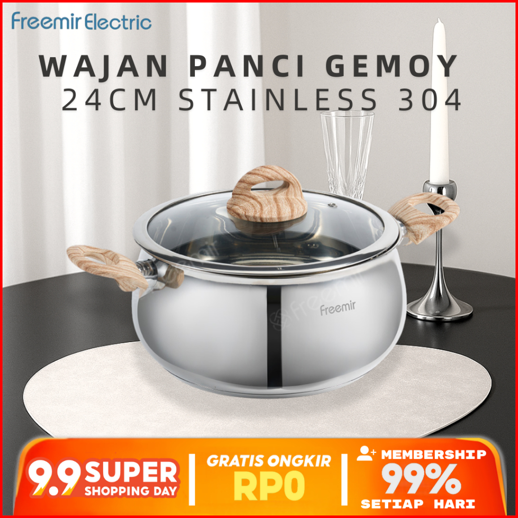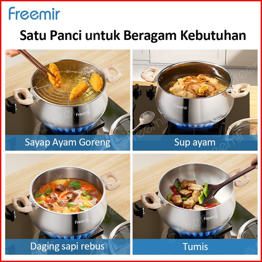 New Freemir Gemoy Stainless Wajan Panci 24cm Sus 304 Kapasitas 5l Foodgrade Serbaguna Bisa Merebus