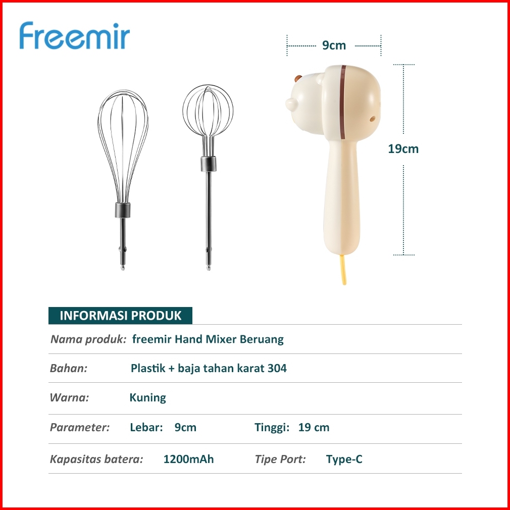Deals Freemir Electric Hand Mixer Type C Nirkabel Portable Egg Beater Rechargeable