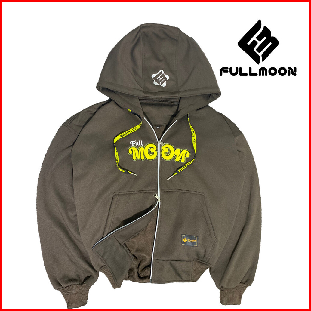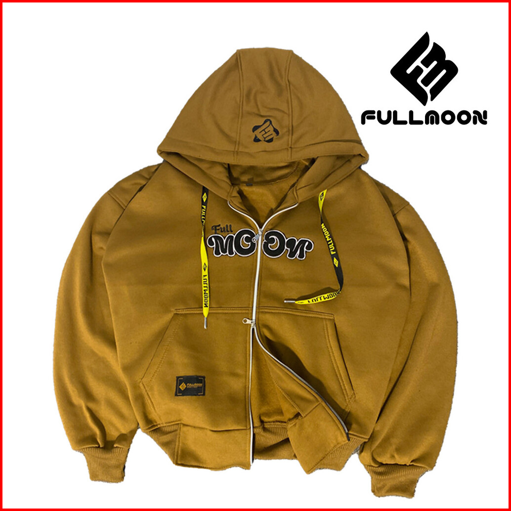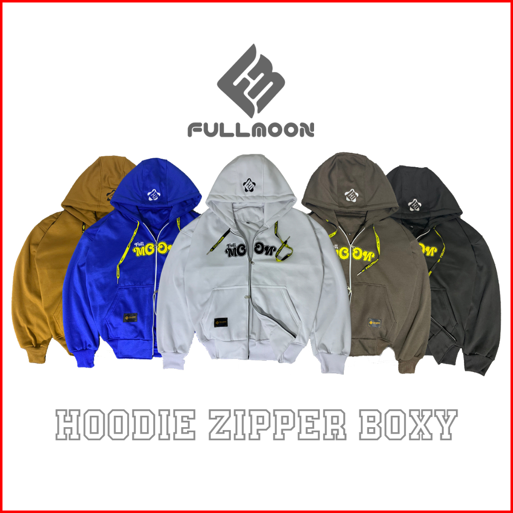 Bunama- Boxy Double Zip Fullmoon Bordir Fleece Tebal 280 Gsm Pria Dan Wanita