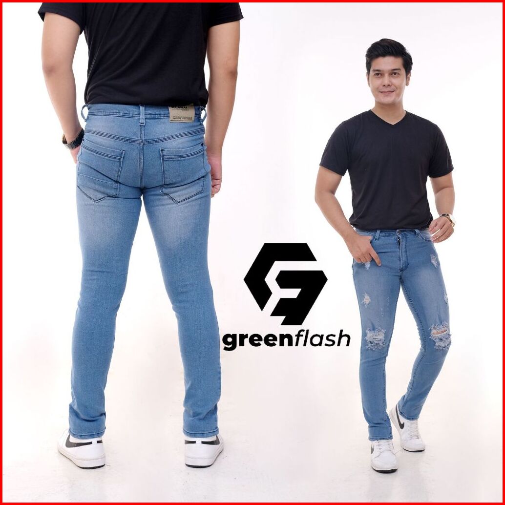 Greenflash - Celana Jeans Pria Sobek Ripped Skinny Premium