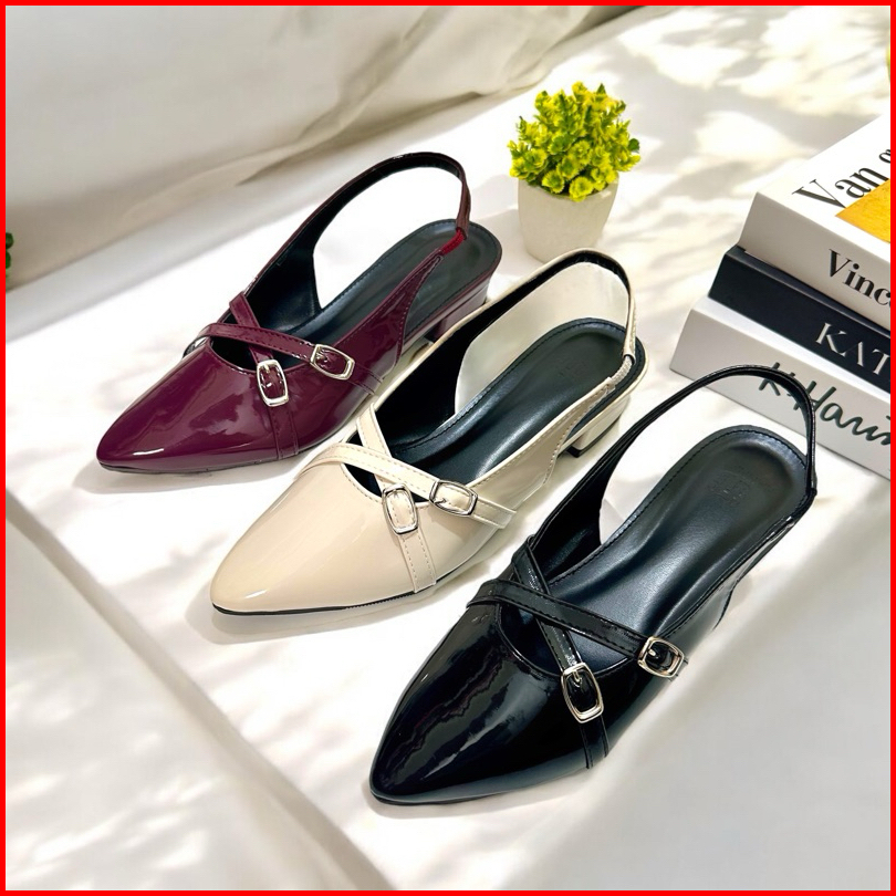Jenifer - Sepatu Mules Wanita Hak 3 Cm Korean Style Empuk Dan Modis