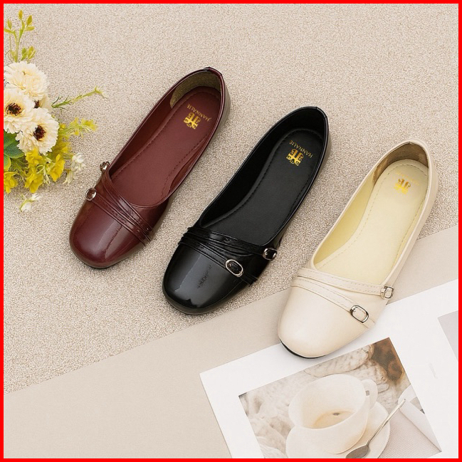 Felfet - Sepatu Flat Shoes Wanita Glossy Maroon Bergundy - Sepatu Wanita Flat Model Terkini