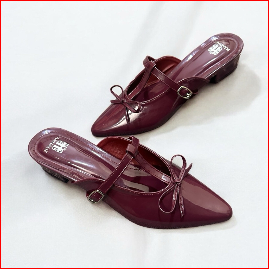 Sandal Wanita Heels Mules Pita 3cm Sandal Heels Selop Pita Hak 3cm Kekinian