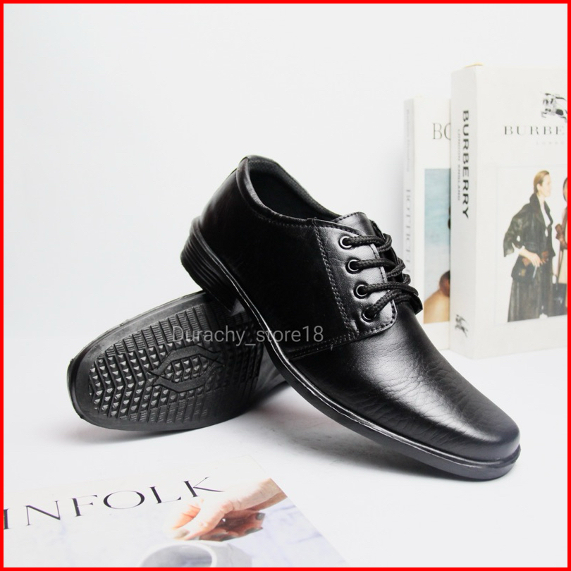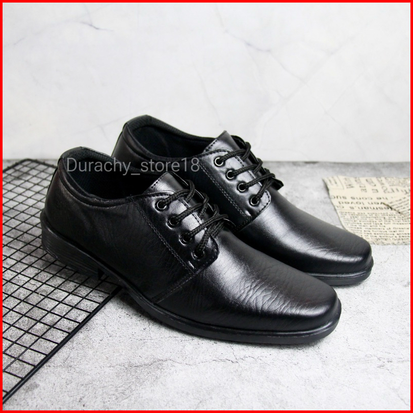 Durachy Sepatu Pantofel Pria Tali Formal Kerja Kantor Kulit Hitam