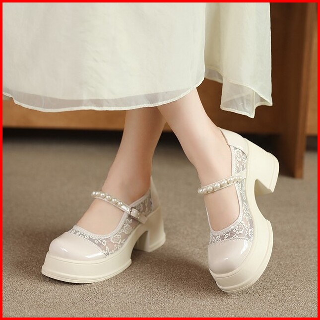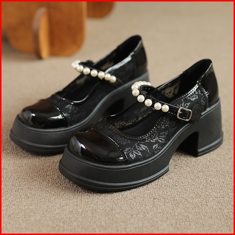Findal Sepatu Wanita Platform Woman Shoes Korean Style Heels Tebal Mary Jane Upper Mutiara Ki-127
